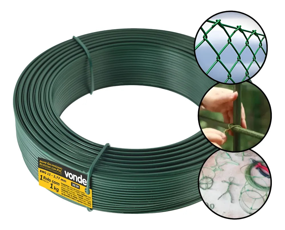 Revestimento: Camada de PVC que cobre o arame por completo, protegendo contra fatores externos.