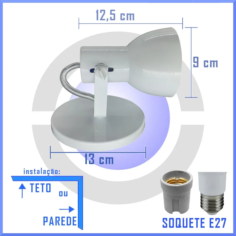 *Sugestão de lâmpada- Bulbo led ou Par20 até 30w (para melhor harmonia na estética do conjunto (spot + lâmpada)