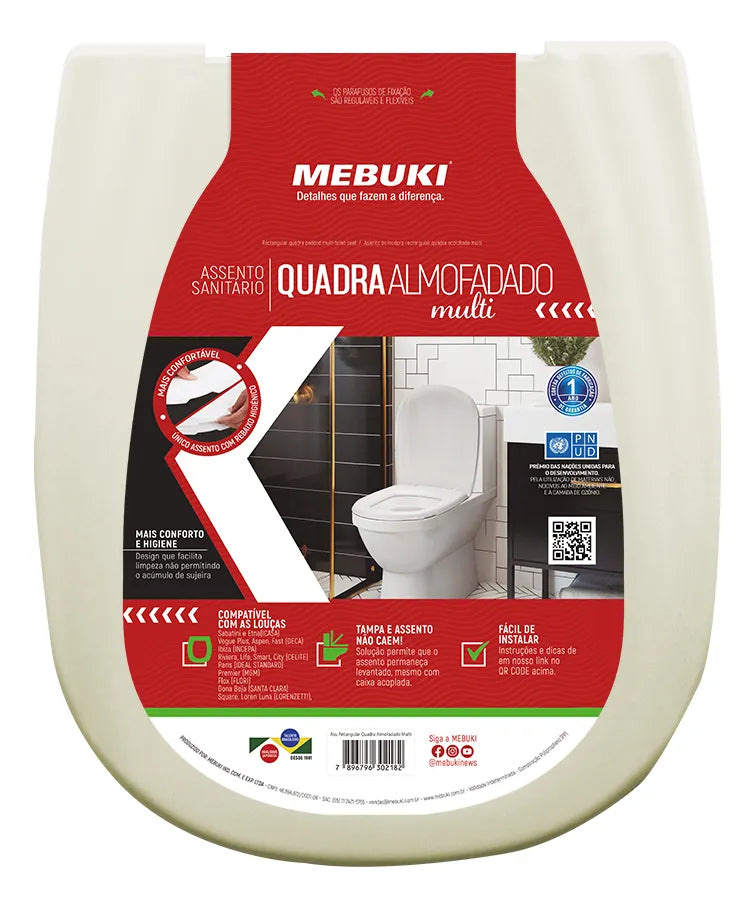 O Assento Sanitário Almofadado Retangular Mebuki é resistente, confortável e de fácil instalação, além de ser compatível com DIVERSAS LOUÇAS RETANGULARES do mercado, de várias marcas!