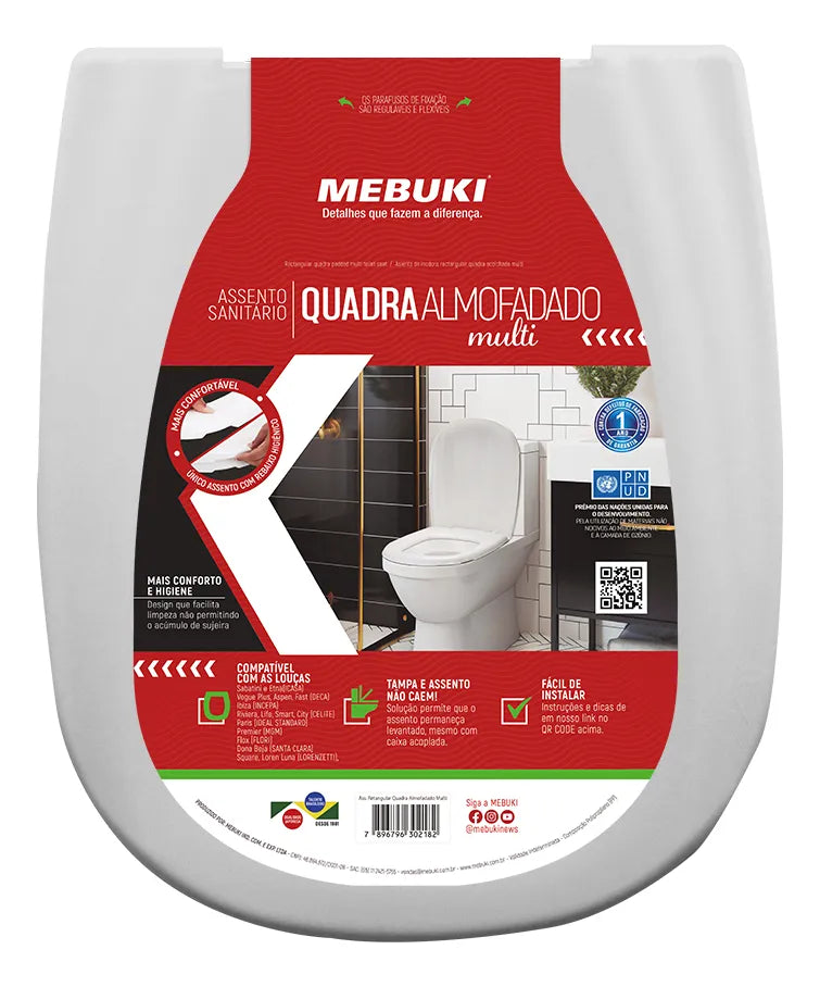 O Assento Sanitário Almofadado Retangular Mebuki é resistente, confortável e de fácil instalação, além de ser compatível com DIVERSAS LOUÇAS RETANGULARES do mercado, de várias marcas!