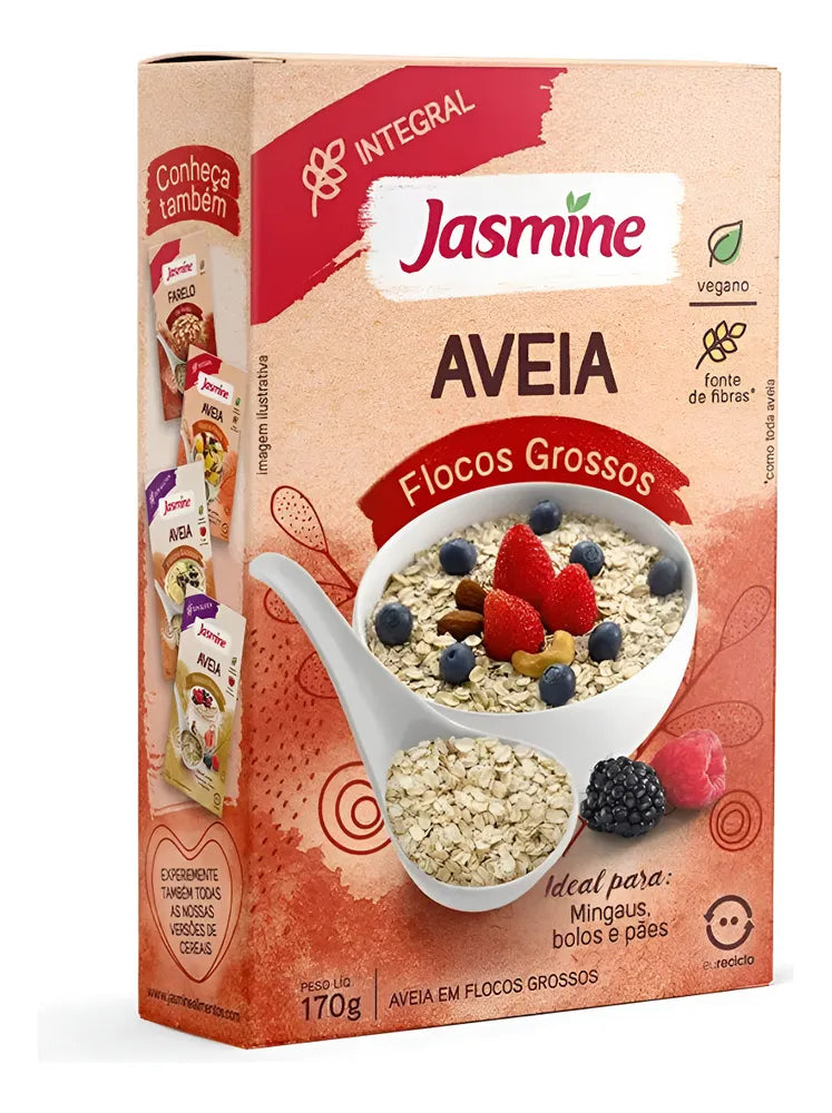 Ideal para preparar mingaus, bolos e pães, a Aveia Integral Jasmine é vegana e uma excelente fonte de fibras. Com sua textura versátil, ela pode ser incorporada em diversas receitas ou consumida pura. Disponível em embalagem de 170g, é a opção ideal para quem quer uma alimentação saudável e equilibrada.