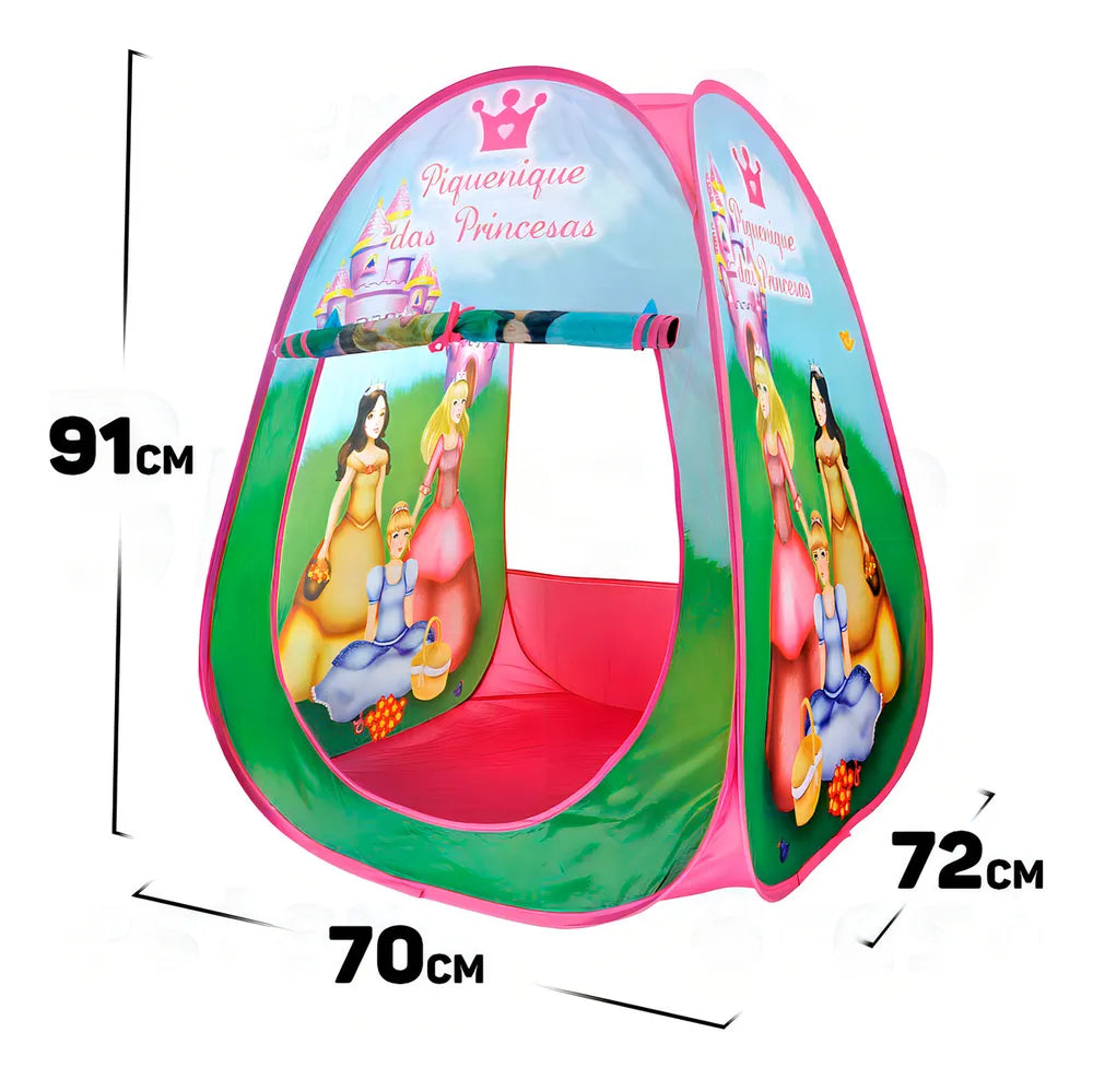 Brinquedo que proporciona alegria e diversão. Barraca Toca Infantil Dobrável Piquenique Princesas oferece um espaço perfeito para a brincadeira das crianças, estimulando a criação de histórias de aventura. Com ilustrações temáticas, é ideal para o quarto ou áreas externas como varandas.