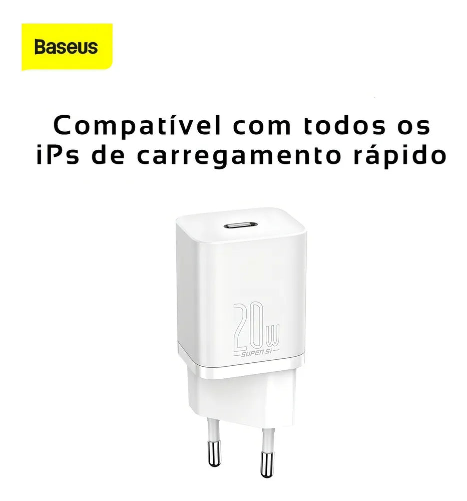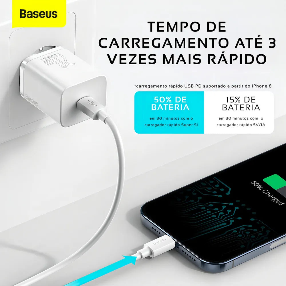 Carregador Super Si Turbo 20w Tipo-c Baseus com Cabo iPhone para iPhone 14 e anteriores.