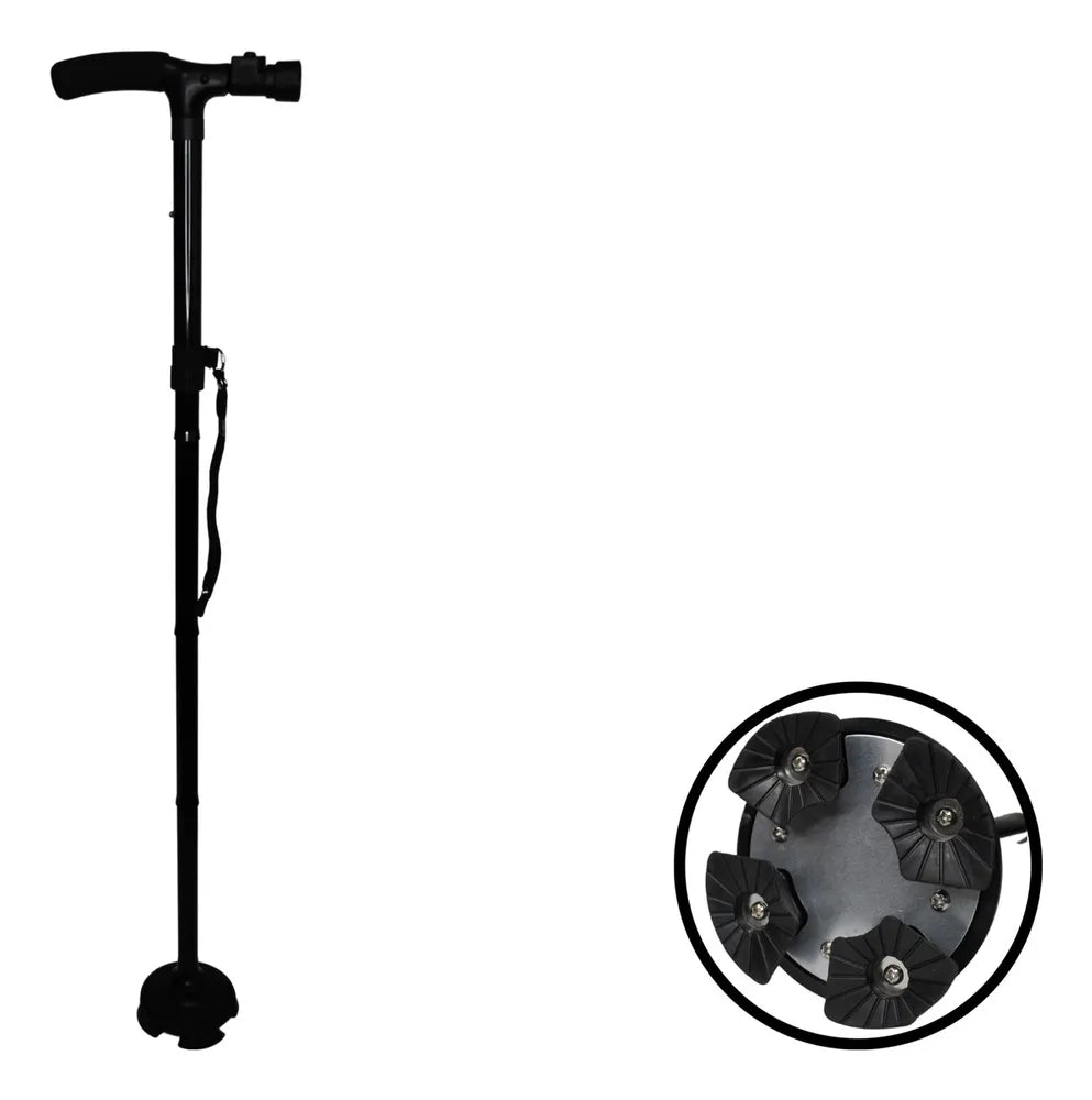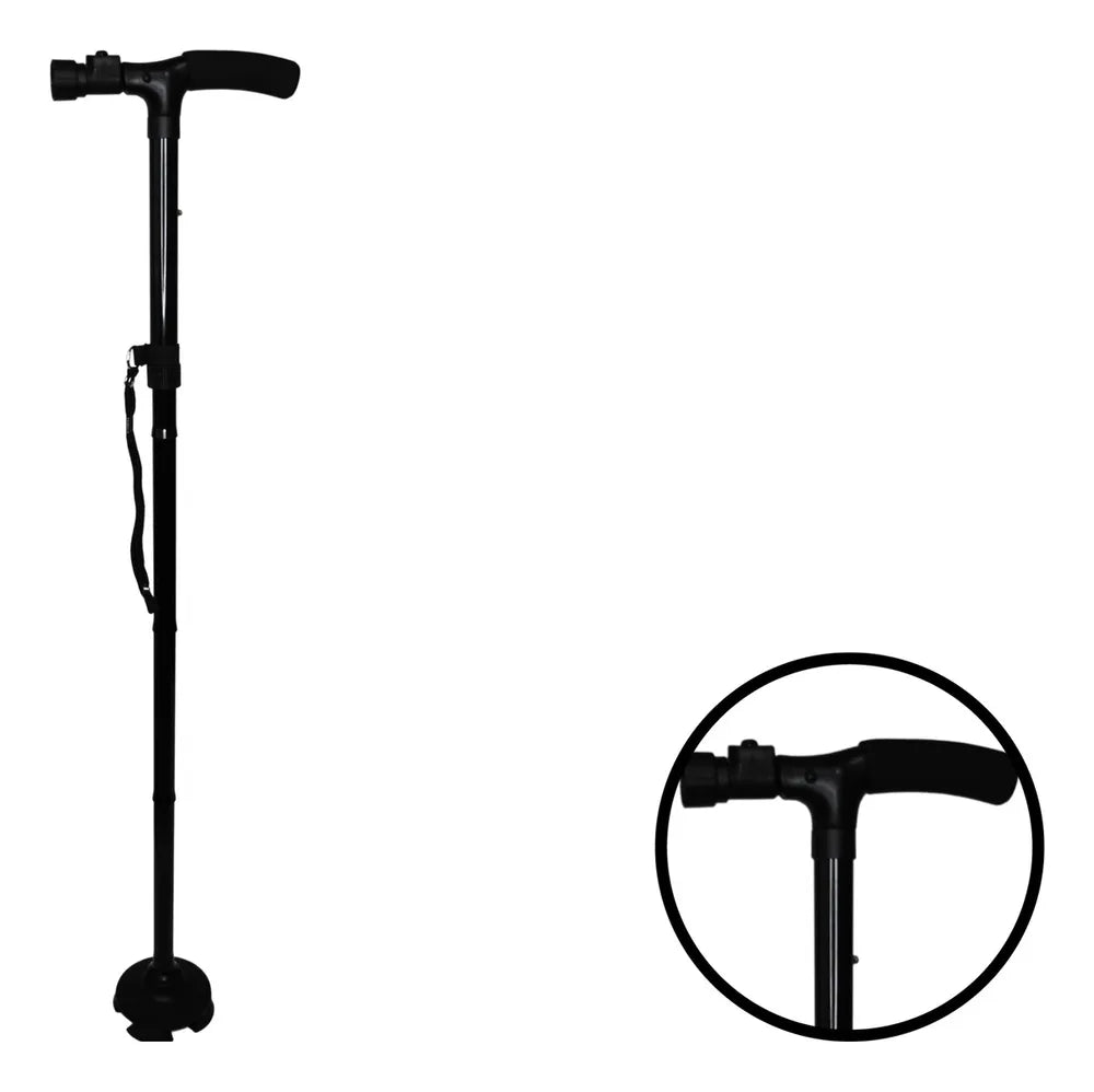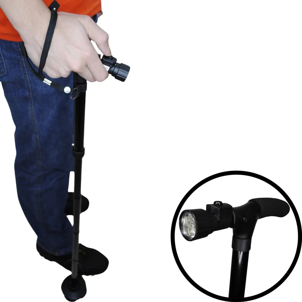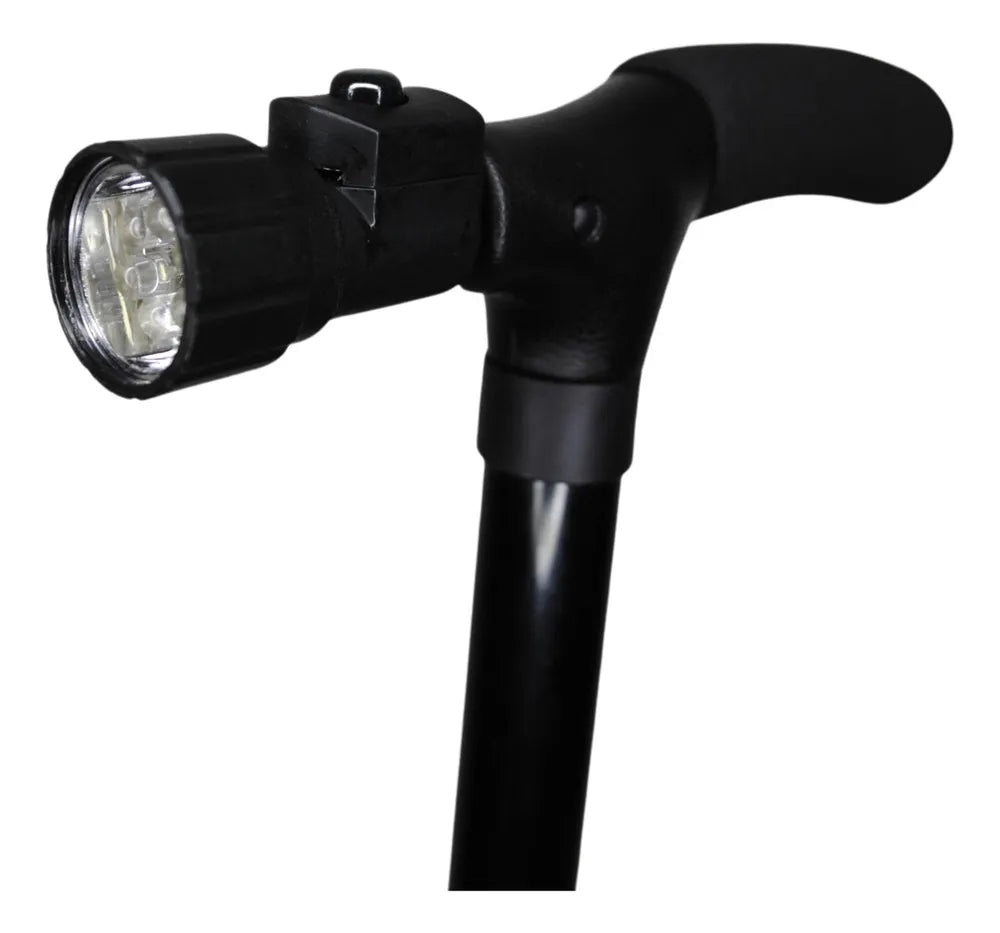 A lanterna de LED integrada proporciona maior segurança durante caminhadas noturnas. A altura pode ser facilmente ajustada com 4 níveis de pinos entre 90 cm a 80 cm e o apoio de mão é ergonômico, reduzindo a fadiga e proporcionando uma experiência muito mais confortável. A ponteira é grande, permitindo que a bengala fique em pé quando não estiver em uso e possui sapatas antiderrapantes para reduzir o risco de quedas. Pode ser dobrada em 4 partes para facilitar o armazenamento quando não estiver em uso. É fácil de transportar e guardar. O cabo é ergonômico, feito de material resistente e acolchoado. A ponteira grande é super estável, formada por 4 borrachas independentes com peça metálica interna que reduz o desgaste e aumenta a durabilidade. A lanterna LED é regulável e pode ser acionada com apenas um clique.