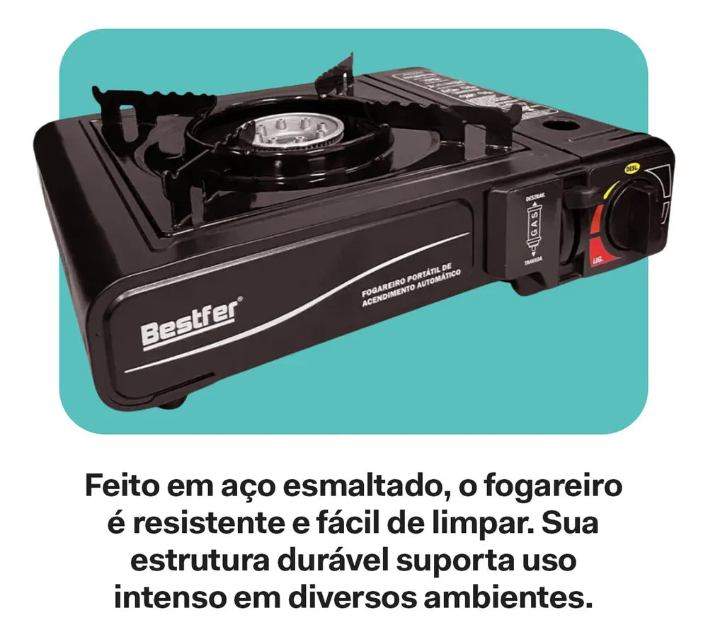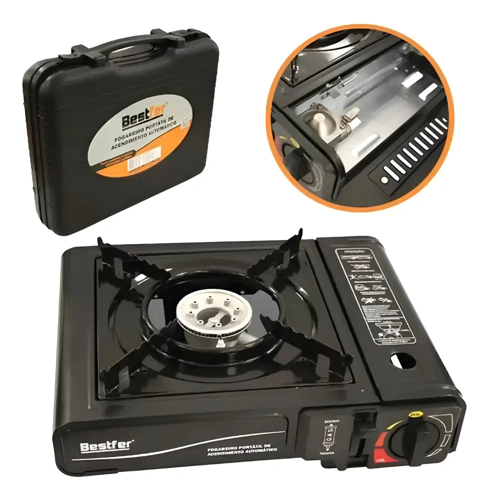 Fogareiro Fogão Portátil Camping 1 Boca Com Maleta Para Viagem Automático Bestfer