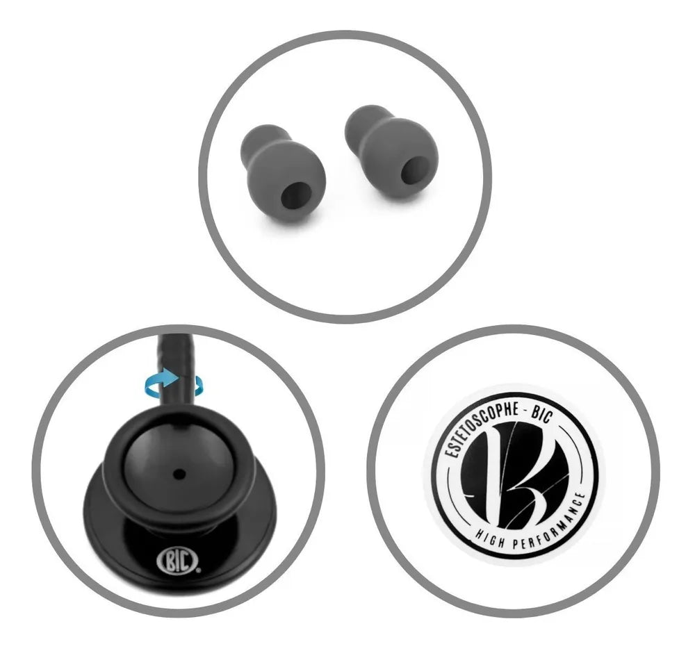 • Auscultador: Cabeça dupla permite auscultação de sons em alta e baixa frequência;