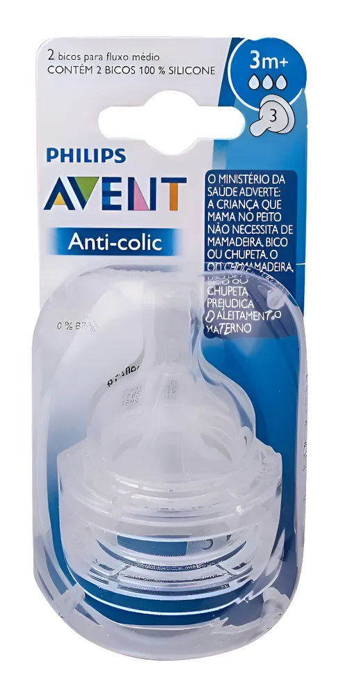 O BICO MAMADEIRA AVENT ANTI-COLIC N.3 é confeccionado em silicone macio, proporcionando conforto ao bebê durante a alimentação. Seu sistema anticólica é projetado para uma amamentação contínua, com uma válvula exclusiva que se abre para permitir a entrada de ar na mamadeira, evitando que o ar vá para a barriga do bebê e prevenindo dores e desconforto. O furo do bico é ideal para o fluxo adequado, dispensando a necessidade de alterações.