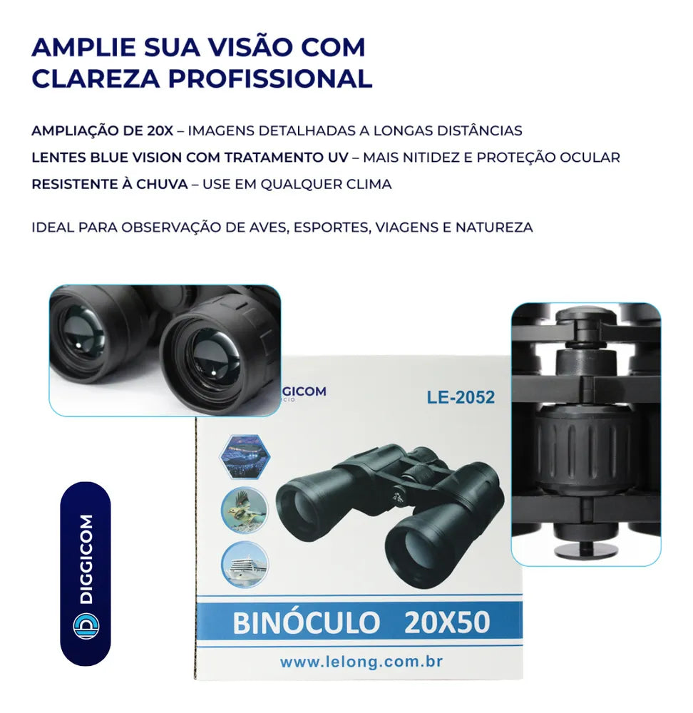 Eleve sua experiência de observação com o binóculo profissional Lelong LE-2052. Projetado para proporcionar imagens nítidas em longas distâncias, este binóculo é resistente à chuva e possui proteção UV, garantindo máximo conforto ao usuário.
