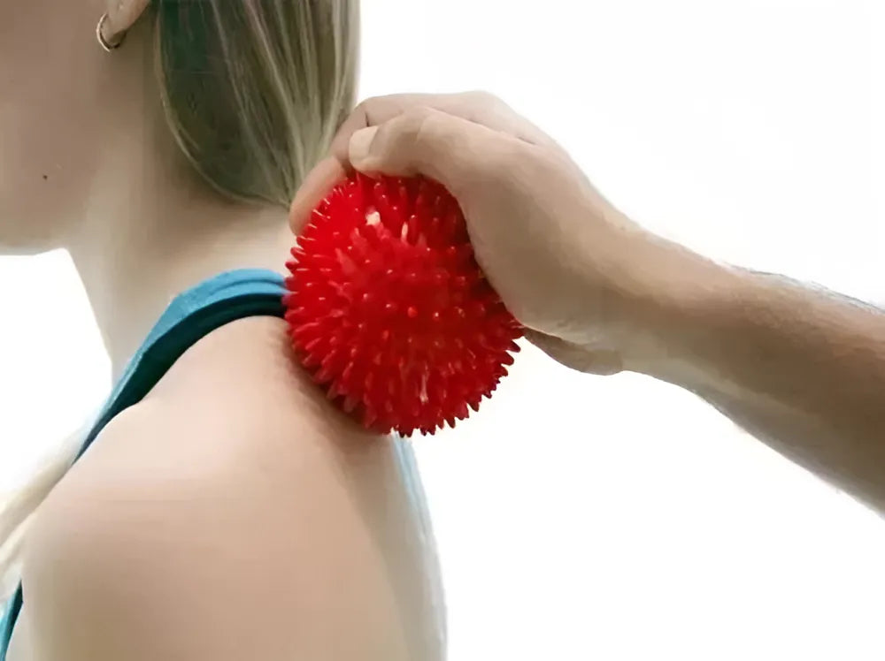 Design com Cravos: A superfície da bola é coberta por cravos emborrachados, que não apenas proporcionam um efeito sensitivo, mas também melhoram o fluxo sanguíneo e promovem relaxamento muscular.