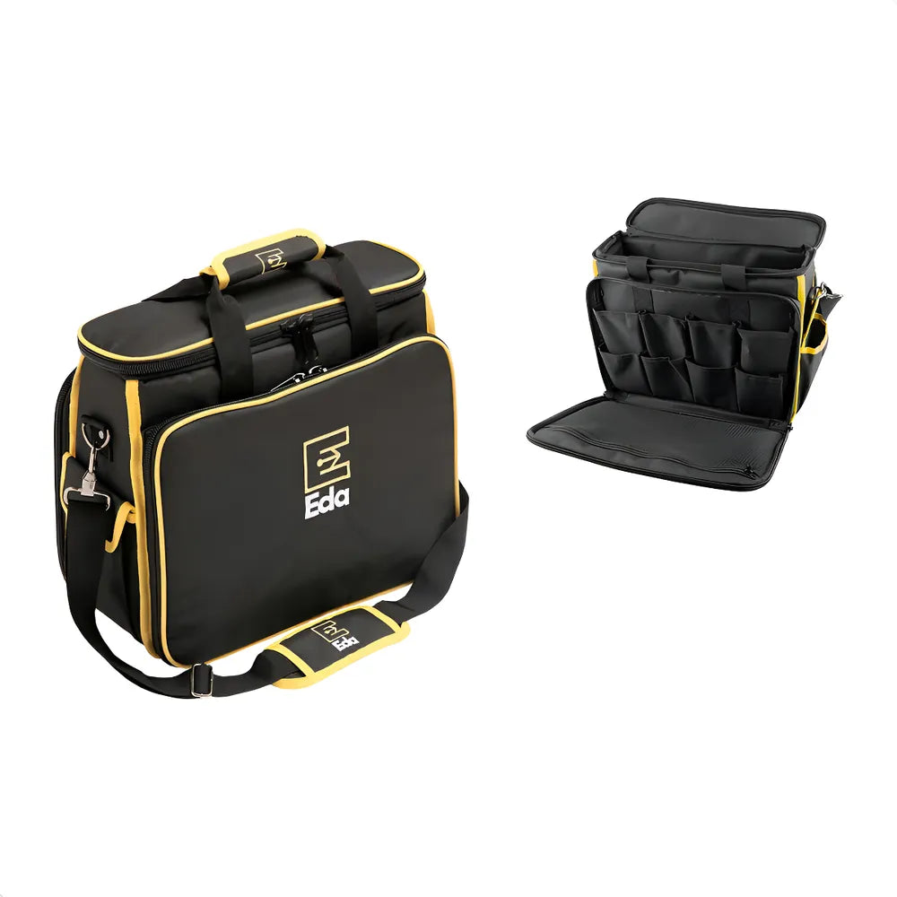 A Bolsa Maleta Para Ferramentas Em Lona da marca Eda é a solução perfeita para organizar e transportar suas ferramentas com facilidade e segurança. Com um design robusto na cor preta, este modelo 9RI possui 30 bolsos, sendo 25 internos e 5 externos, permitindo uma organização eficiente de suas ferramentas. Com dimensões de 40 cm de comprimento, 20 cm de largura e 35 cm de altura, esta bolsa é compacta, mas ao mesmo tempo espaçosa, podendo acomodar uma grande variedade de ferramentas. A lona de alta qualidade garante durabilidade e resistência, tornando esta bolsa uma escolha confiável para profissionais e entusiastas do faça-você-mesmo. Adquira a sua e experimente a praticidade e a eficiência que ela pode trazer para o seu dia a dia.