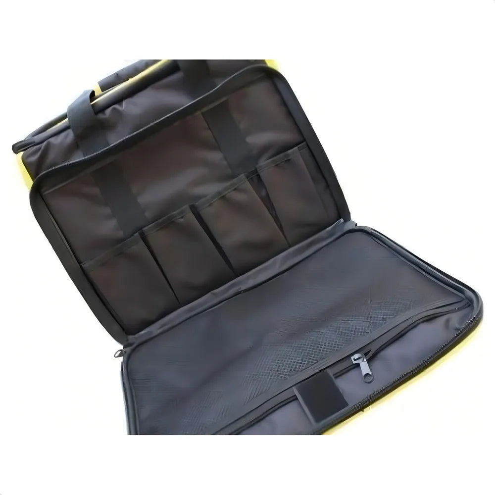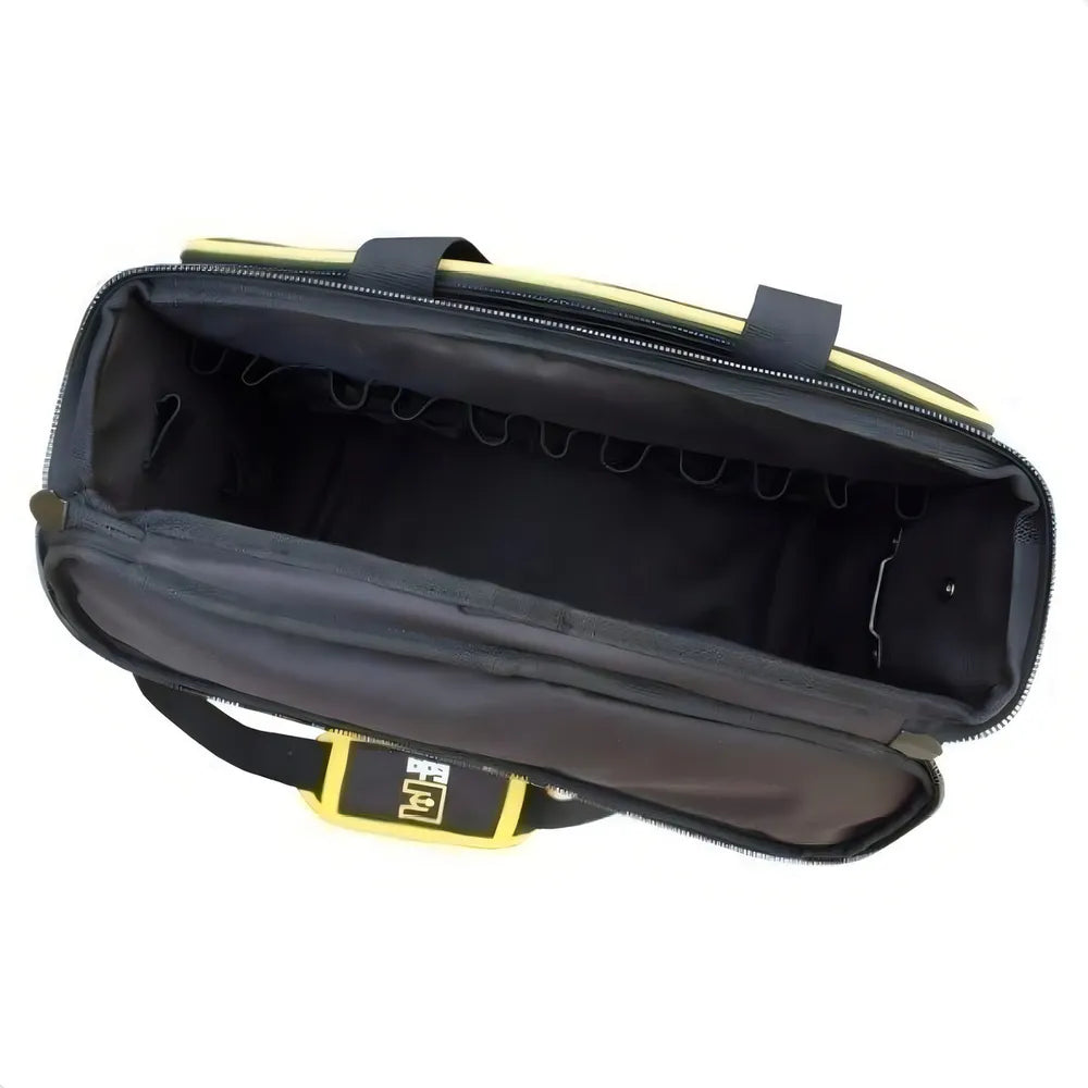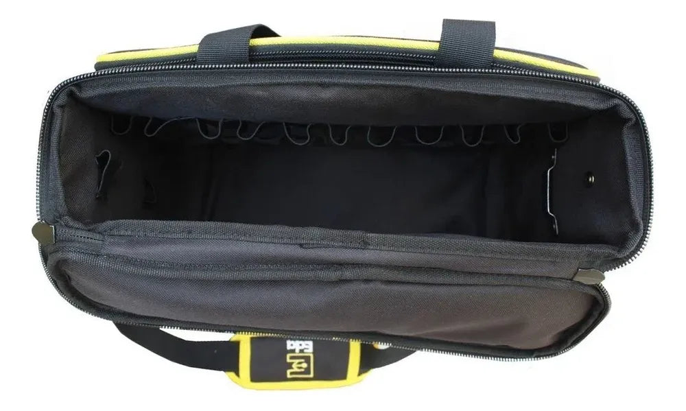 Bem espaçosa cabe bastante ferramentas + uma parafusadeira. Gostei muito! o ponto negativo é que a costura não e reforçada, em pouco tempo de uso em alguns pontos jé está descosturando.