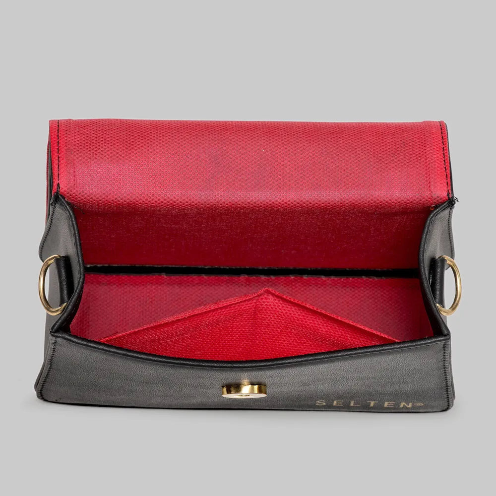 O Kit também acompanha a bolsa Olívia, nossa aclamada clutch. Com um design super estiloso, destaca-se pela sua tampa única, conferindo um toque de sofisticação que a torna uma escolha irresistível para diversas ocasiões. É perfeita para eventos formais, festas ou ocasiões especiais, onde sua elegância compacta e design diferenciado se destacam. O tamanho ideal da clutch permite que você carregue o essencial com estilo, sem comprometer a praticidade. Além de acompanhar uma alça transversal removível também.