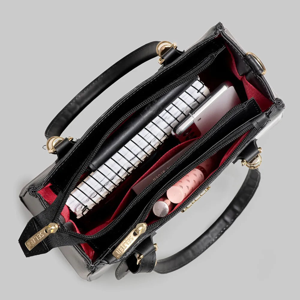 A Bolsa Selten é ideal para mulheres que desejam levar consigo itens essenciais com elegância. Possui fechamento em zíper e alça removível, proporcionando versatilidade e segurança. Acompanha uma carteira elegante e prática, adequada para todas as ocasiões. Recomendada para uso cotidiano e profissional.