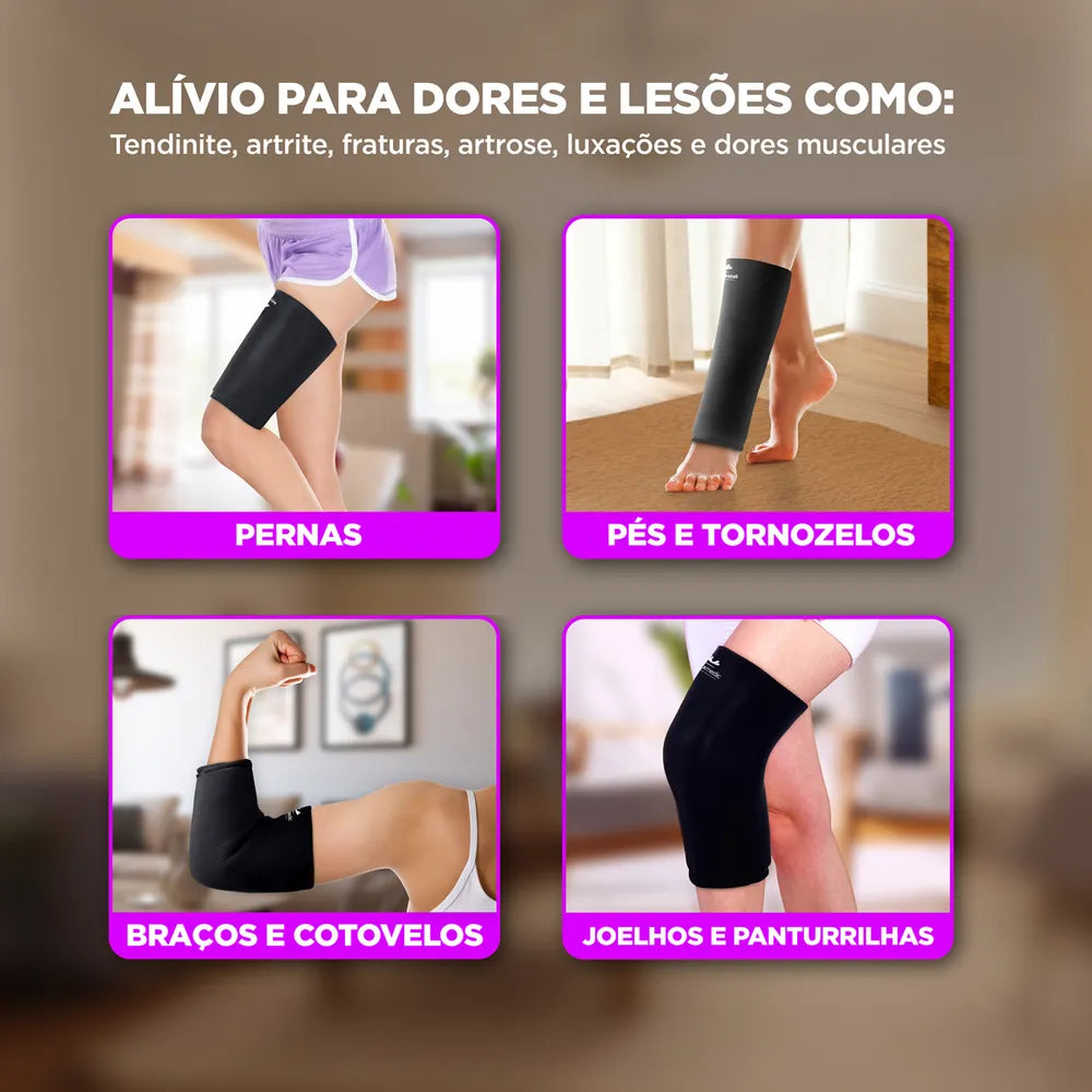 Este modelo oferece a mesma eficiência de alívio, perfeito para lesões como tendinite, artrite, pequenas fraturas, luxações e dores musculares localizadas. Permite escolha entre compressa quente ou fria, de acordo com a situação.
