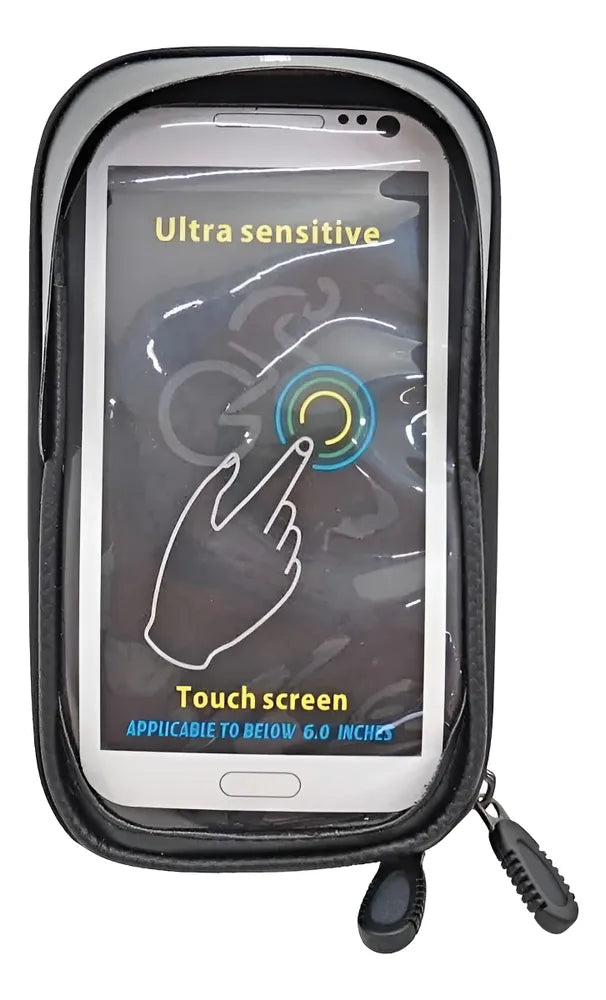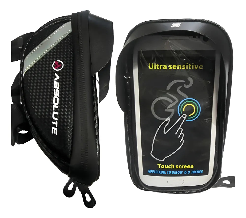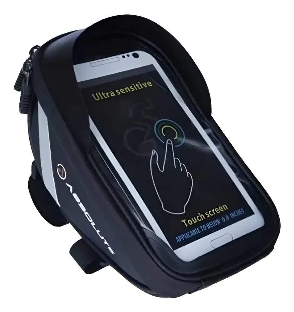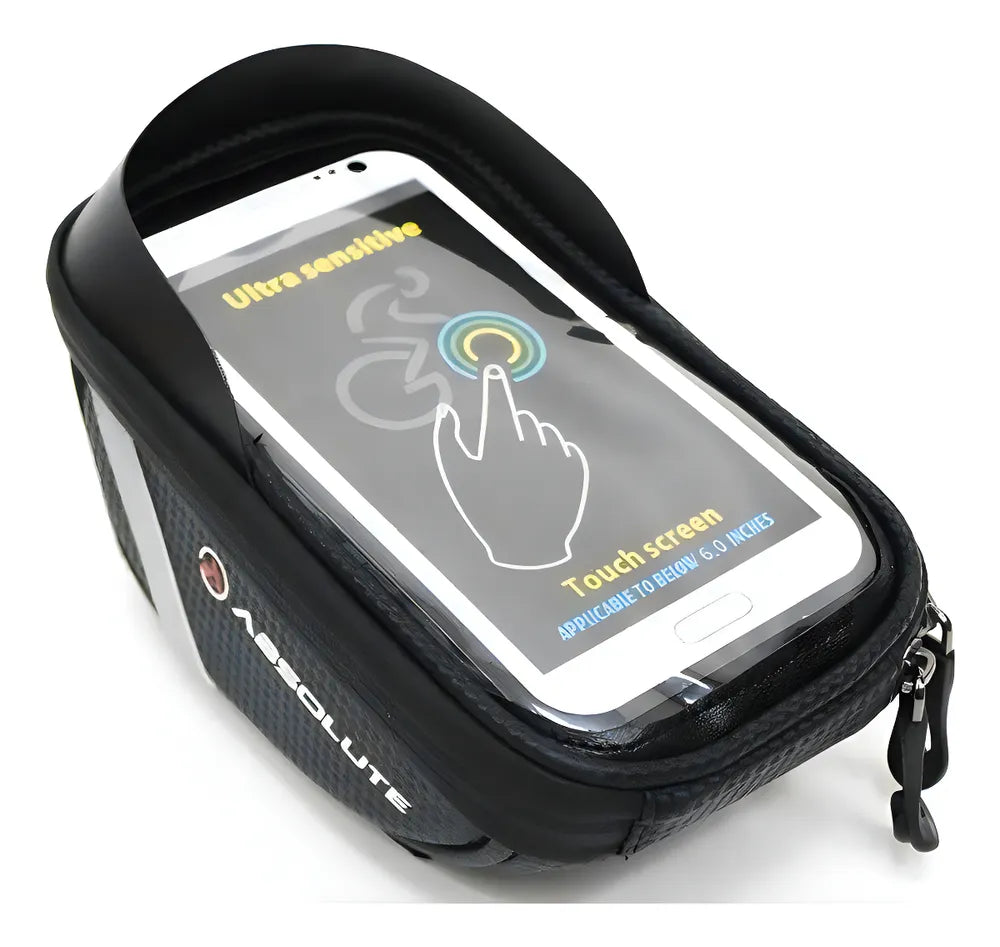 Touch funciona bem. Tamanho da bolsa excelente. Material semi rígido. Qualidade boa do fecho. Único problema é que balança muito durante pedal.