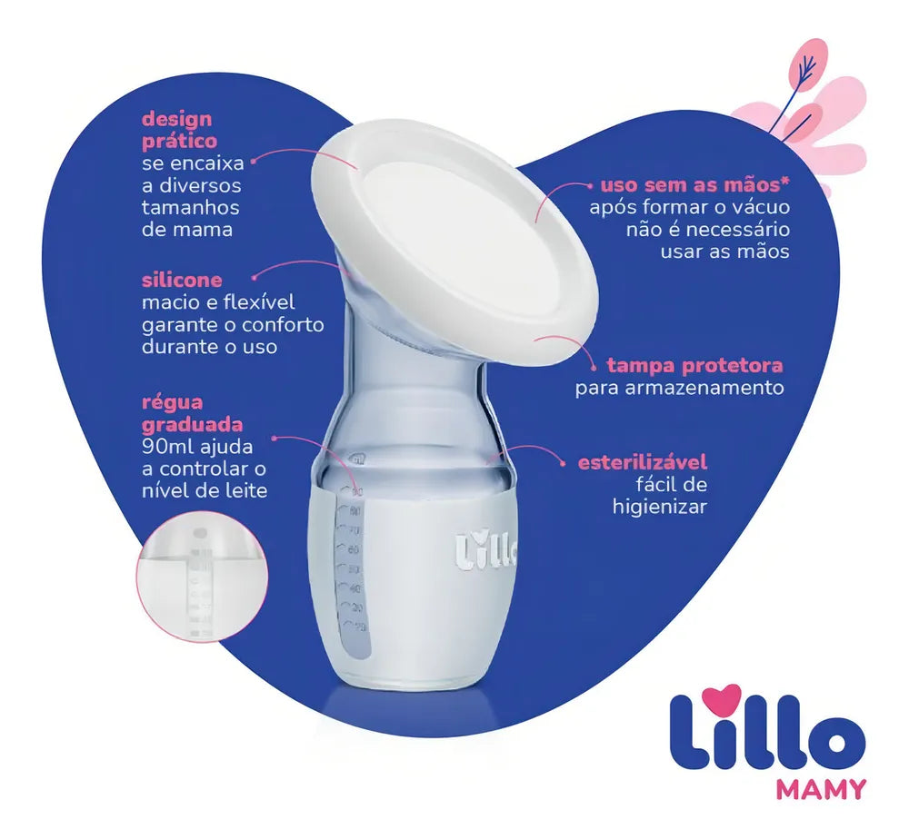 O Coletor de Leite Materno Lillo foi especialmente projetado em silicone 100% macio e pode ser utilizado em diferentes momentos, seja em conjunto, com bomba manual ou elétrica, ou em um único seio para coletar de forma natural o leite ejetado através de uma sucção gentil. Não é necessário o uso das mãos após o vácuo.
