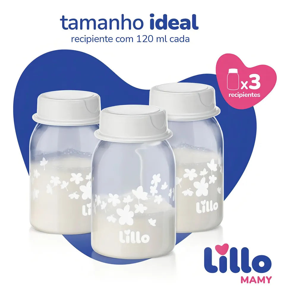 Kit Coletor de Leite Materno Com 3 frascos de 120ml Cada - Lillo