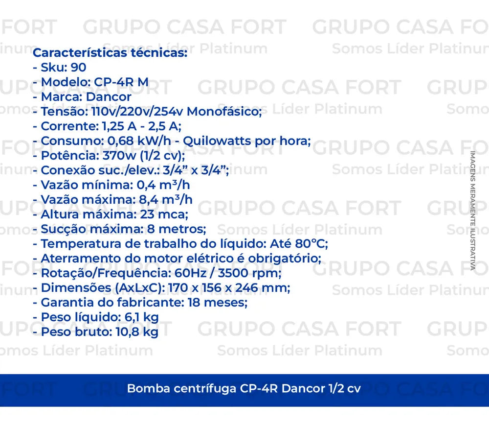Atenção, na hora de comprar. A bomba tem dois códigos cp-4r é com rosca nas entradas e cp-4c é com cola nas entradas. Excelente produto.
