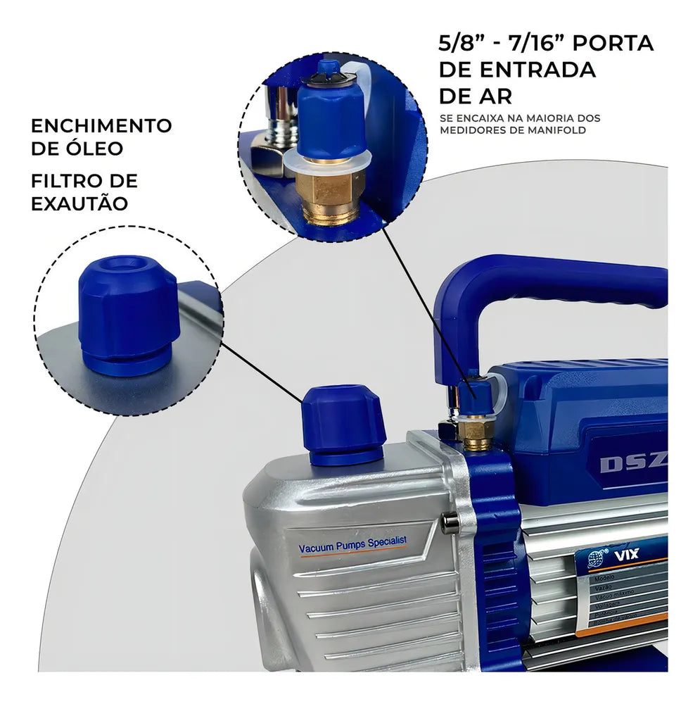 A Bomba de Vácuo 1.8 CFM da Vix é a bomba de 1.8 CFM de maior qualidade que você encontrará. Foi desenvolvida para serviços de ar condicionado e refrigeração. A tecnologia moderna utilizada na fabricação permite adquirir um produto de alta qualidade e durabilidade, que alcança altos níveis de vácuo e tempos de evacuação mais curtos.
