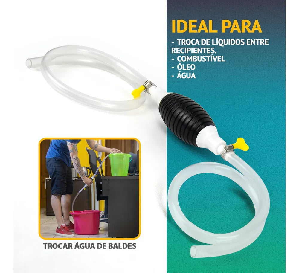 A Bomba de Sucção Manual é IDEAL para você que precisa transferir um líquido de um local para o outro sem a necessidade de ter que ficar puxando o líquido com a boca,sendo PERFEITA para fluídos e Combustíveis