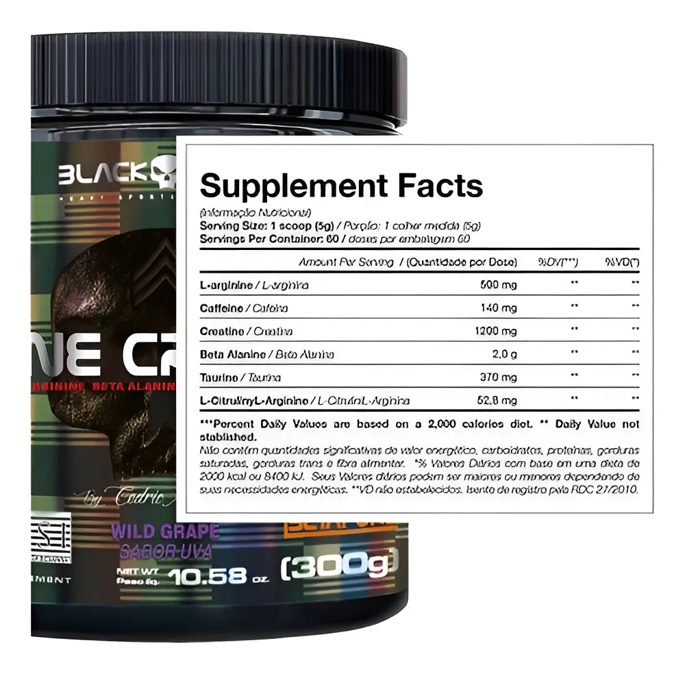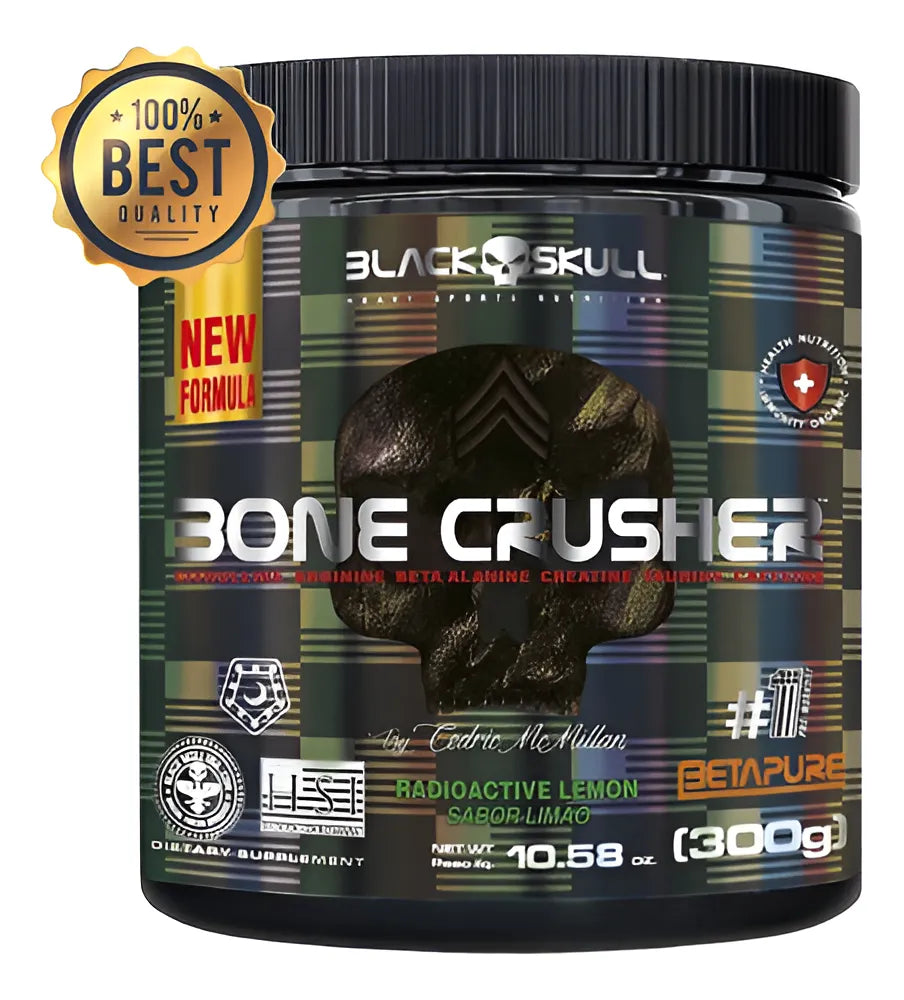 BONE CRUSHER™ é sinônimo de energia explosiva e desempenho máximo. O melhor pré-treino do mercado possui em sua formulação ativos como a creatina, beta-alanina, arginina, taurina, cafeína (e mais!). Esse é o produto mais premiado da BLACKSKULL USA™.