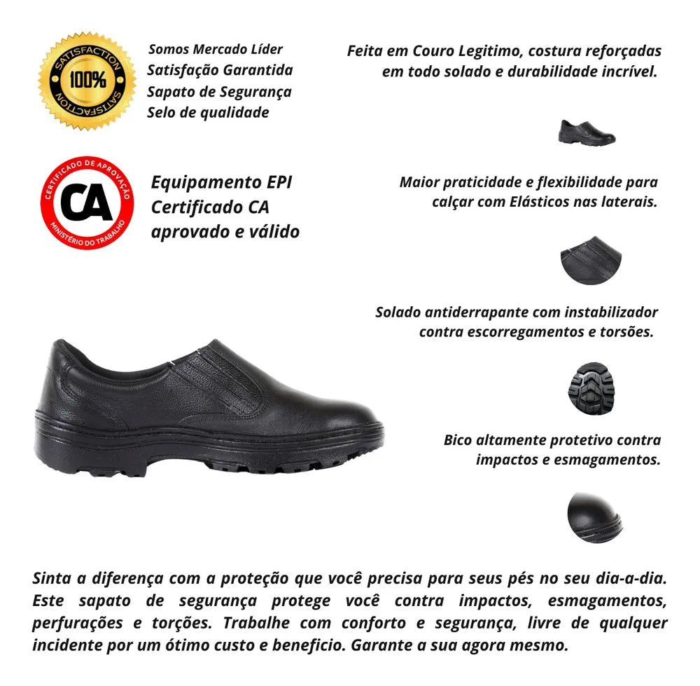 Proteção Incomparável: Com a biqueira protetiva e a sola antiderrapante, você está investindo na segurança dos seus pés contra impactos e escorregões. Menos riscos de acidentes significa menos custos com afastamentos e tratamentos médicos.