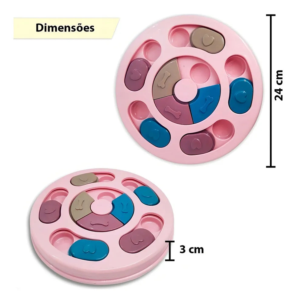 Este produto inclui 01 (UM) Brinquedo Comedouro Interativo para Cães Quebra Cabeça Tabuleiro.