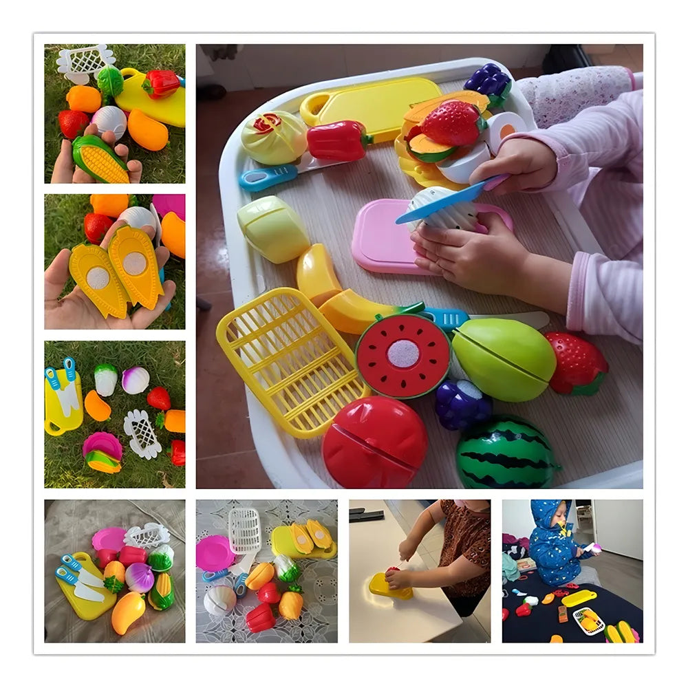 A criança explora novas experiências através do brincar, estimulando a imaginação, desenvolvimento intelectual, sensorial e estimula coordenação viso motora, pois algumas frutinhas têm ligação que dá para cortar no meio.