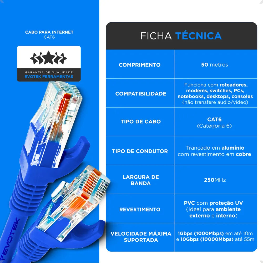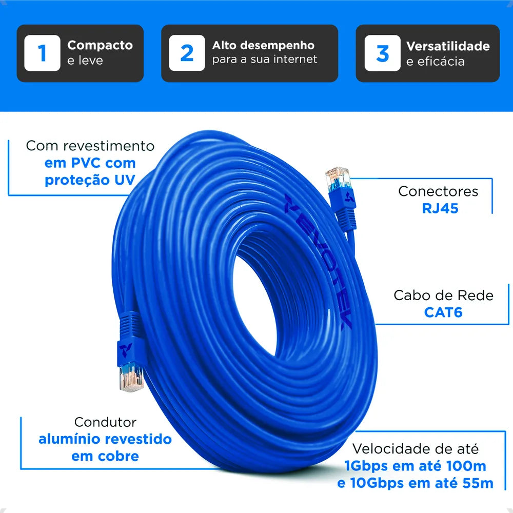 Tags: Cabo Cat 6 de Rede Internet, Conectores Rj45 Crimpados, Giga Lan Ethernet, Par trançado UTP, Instalação residencial e empresarial.