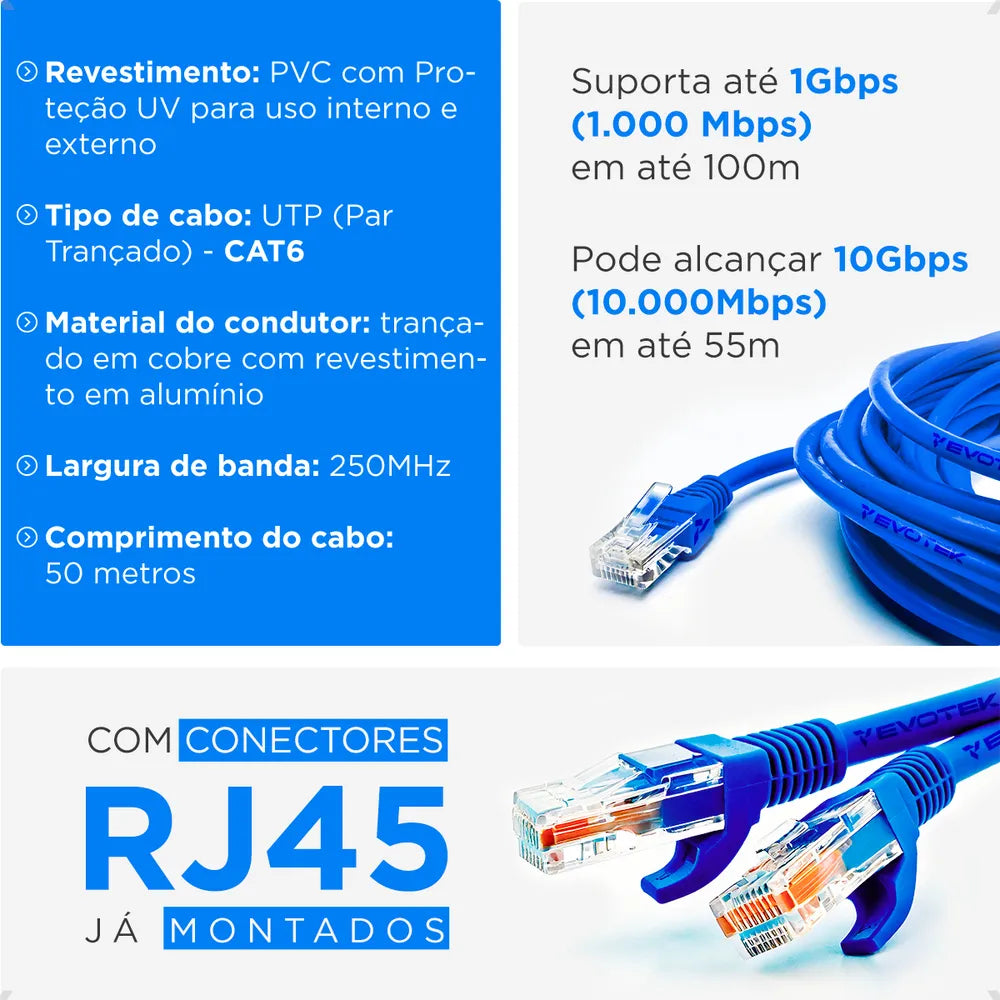 - Pronto para Uso – Já vem com conectores RJ45 montados