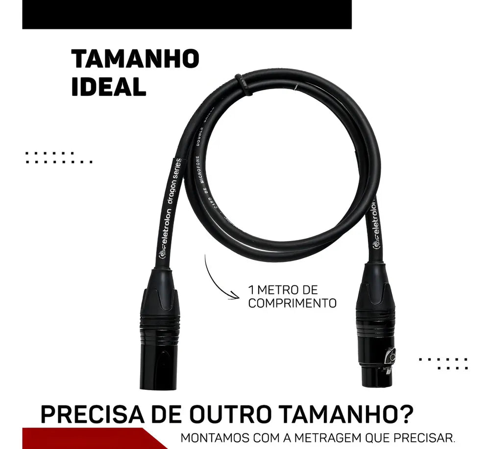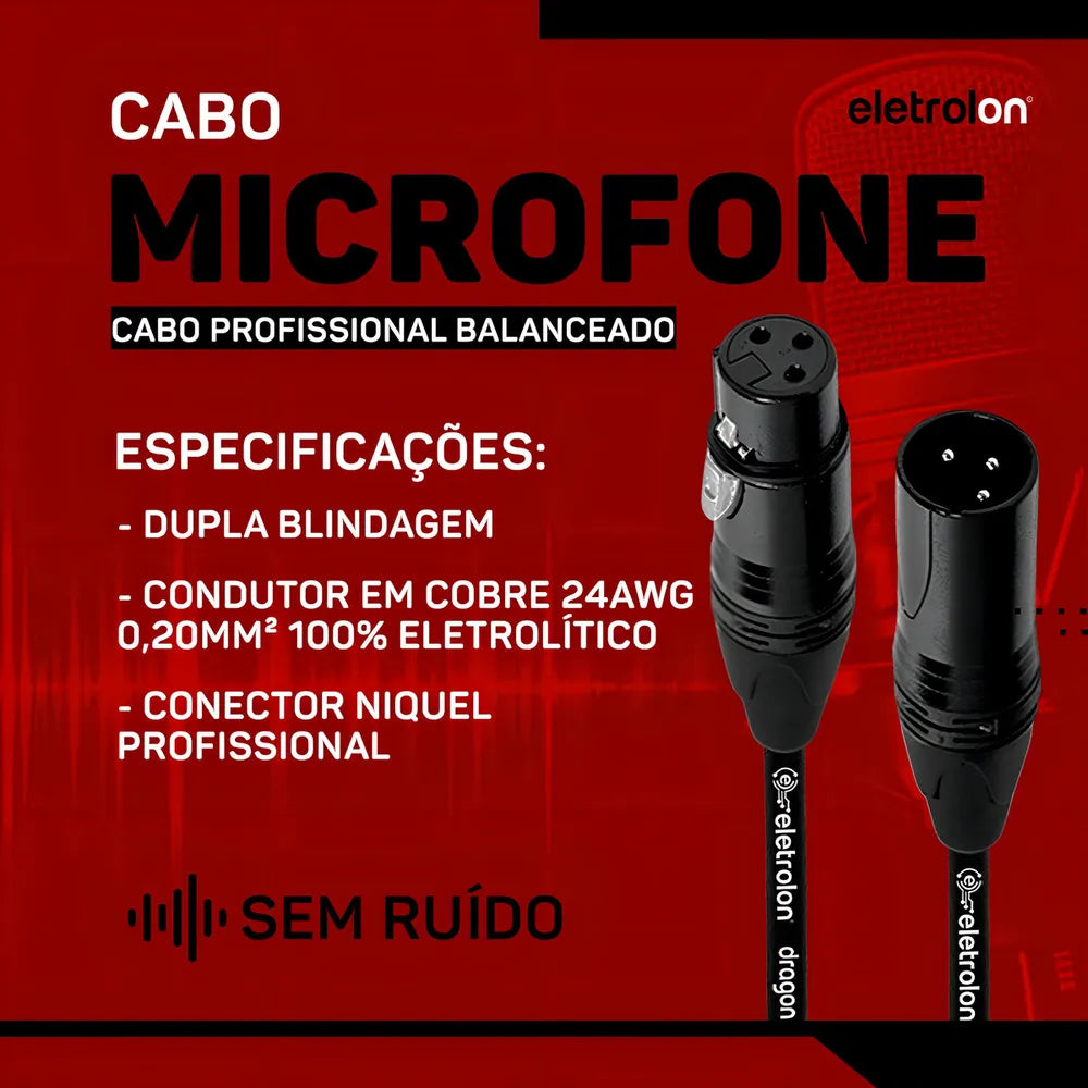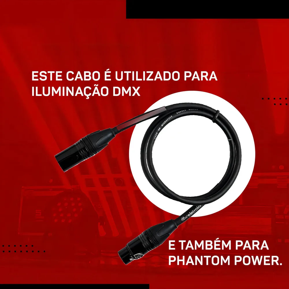 Cabo de Microfone e DMX Profissional - Conector de Níquel, Dupla Blindagem e Fabricação Própria da Eletrolon
