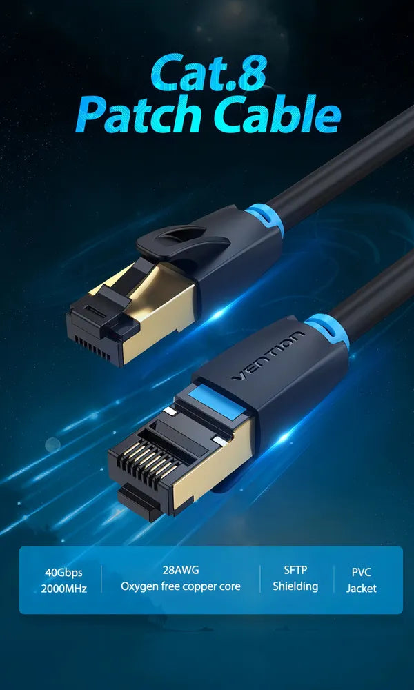 O Cabo Vention CAt8 é o cabo de rede mais rápido do mercado, proporcionando uma velocidade maior e estável ao navegar, sendo 4 vezes mais rápido que cabos comuns.