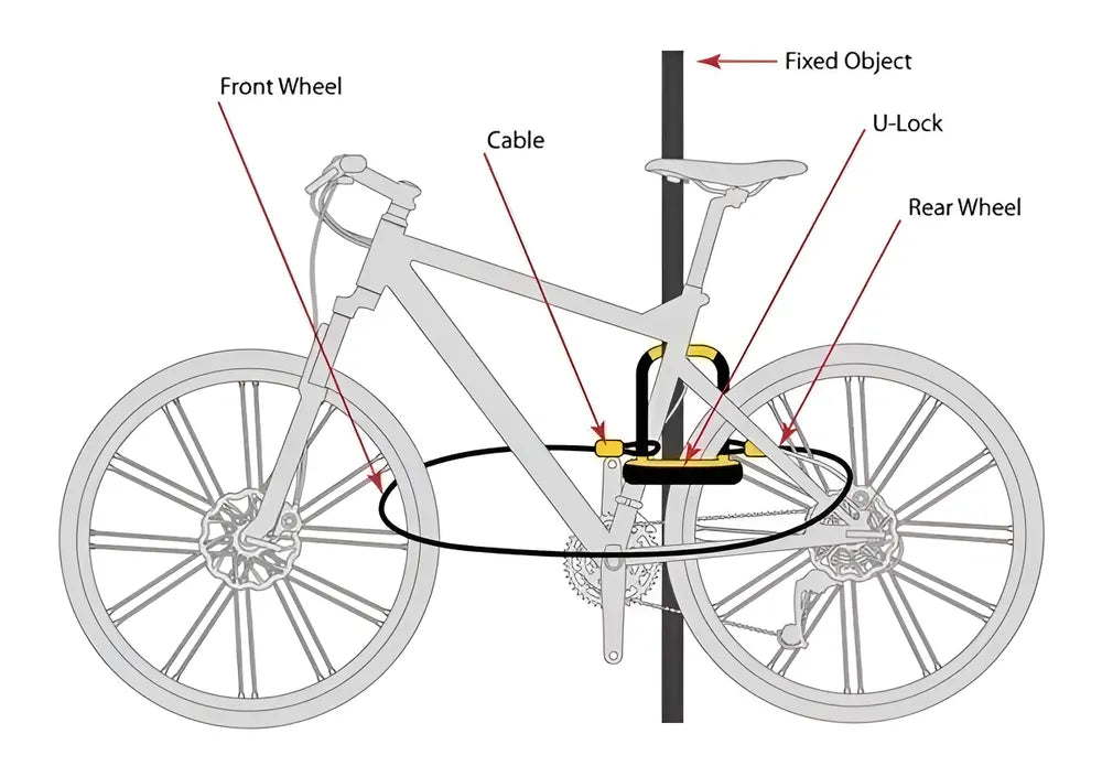 Produto conforme a expectativa. De fato o cabo que acompanha é um pouco curto e não dá pra unir as duas rodas da bike, mas consegui contornar isso usando a trava para prender o quadro e a roda dianteira no bicicletário, enquanto o cabo prende a roda traseira pelo menor caminho possível e encaixa na trava, no limite da distância. Excelente produto!.