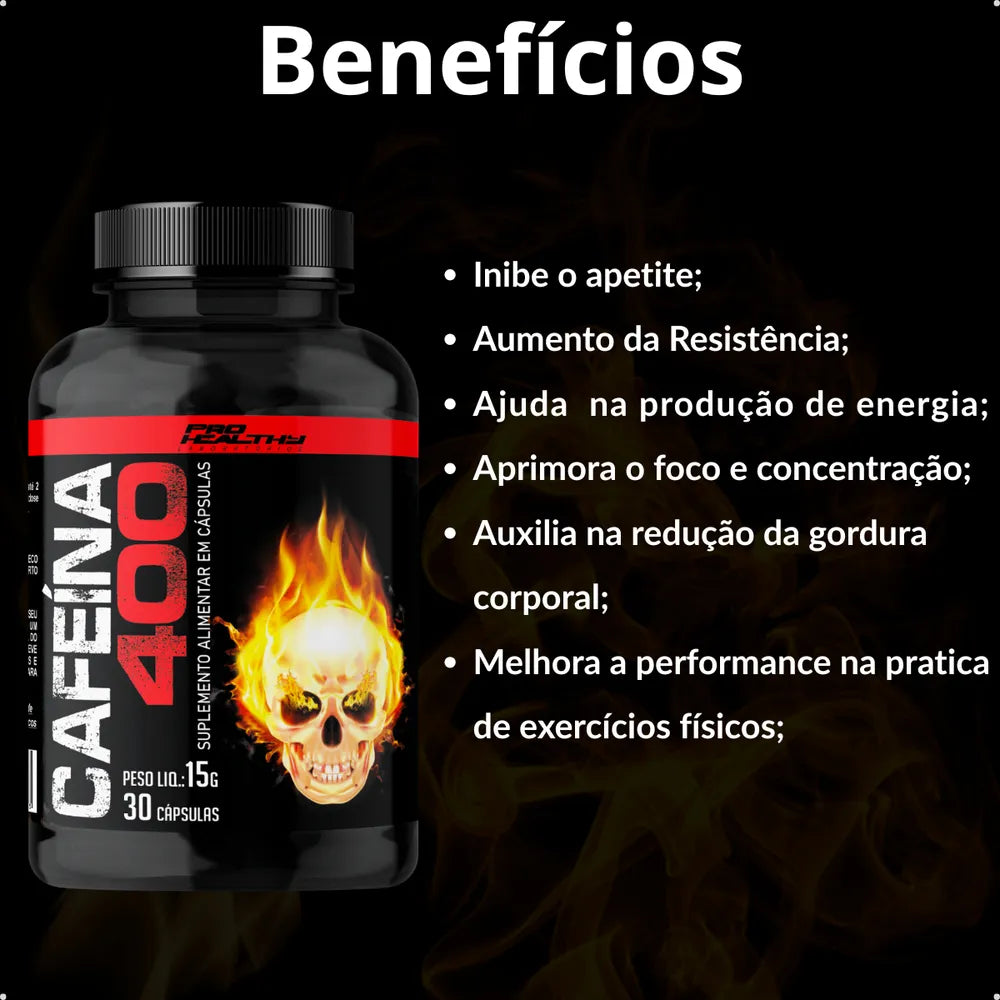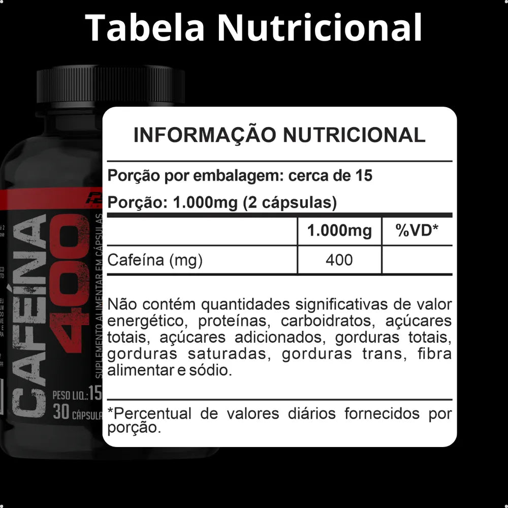 Cafeína Anidra (1-3-7- Trimetilxantina), Excipientes dióxido de silício e estearato de magnésio. Não Contém Glúten.