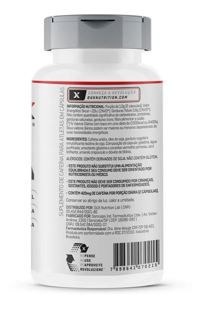 DUX Cafeína™ é um poderoso estimulante do sistema nervoso central, feito exclusivamente com cafeína anidra de pureza superior a 98,5%.
