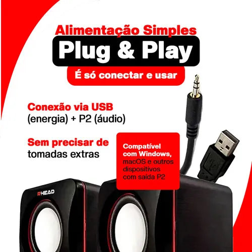 Conexão: P2 e USB (1.1) (2.0)