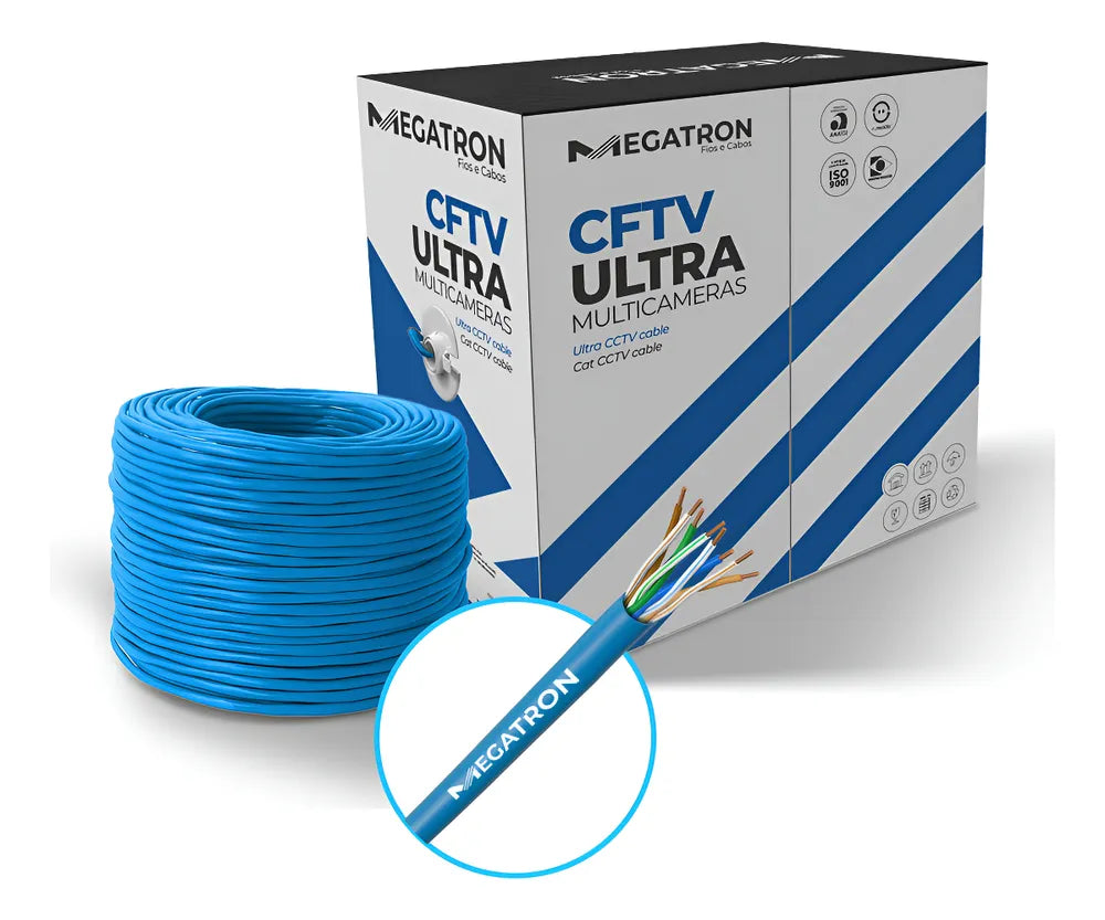 O cabo MEGATRON ULTRA CFTV é constituído por condutores em liga de Alumínio Acobreado CCA, isolado em material termoplástico, combinados e reunidos, formando o núcleo, que é revestido por uma capa termoplástica em PVC retardante a chama, com classificação CMX e aplicação destinada a sistemas de CFTV.