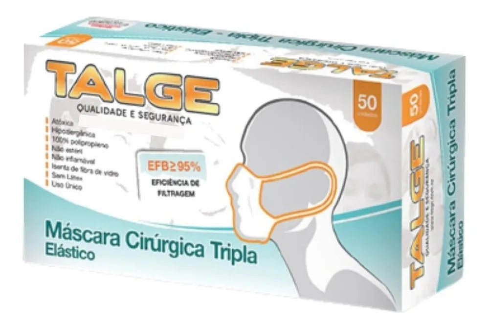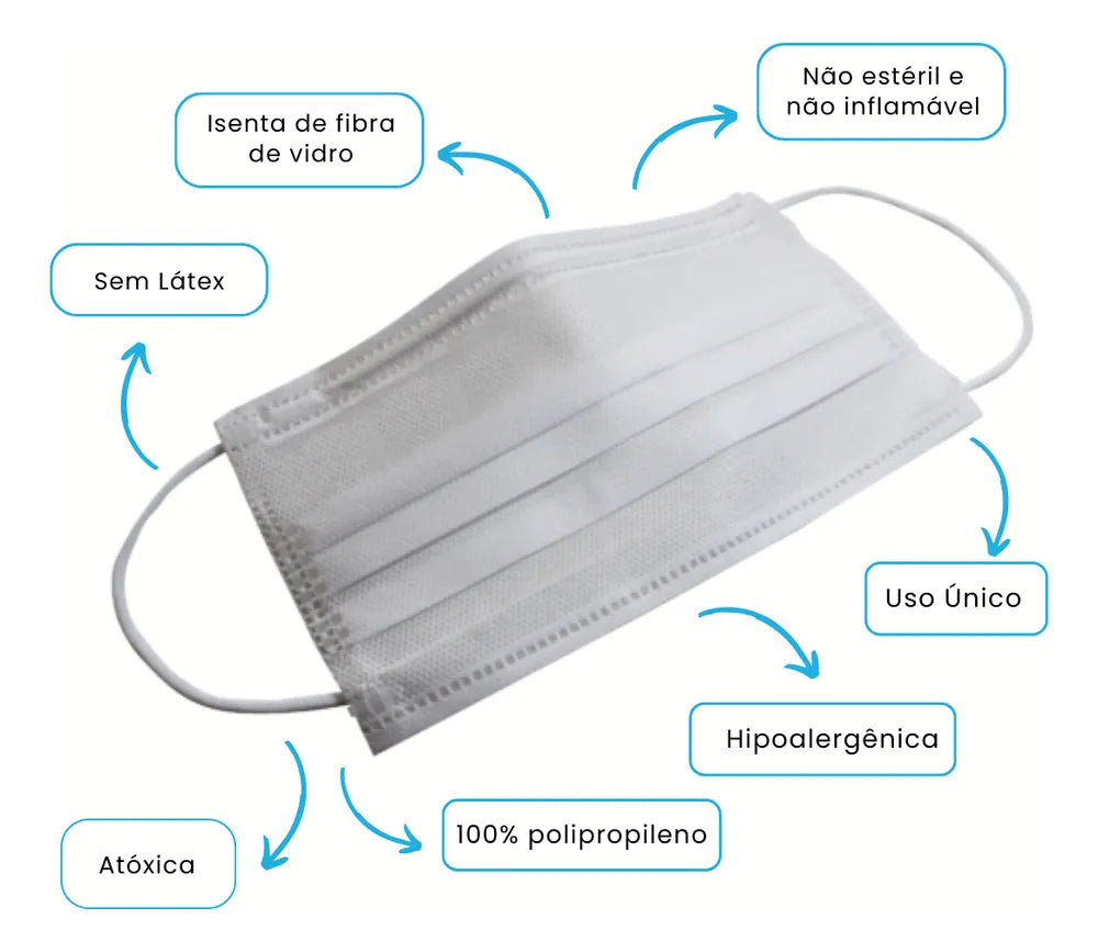 Itens inclusos: 01 Caixa com 50 unidades de máscaras tripla descartáveis, cor branca - com elástico;