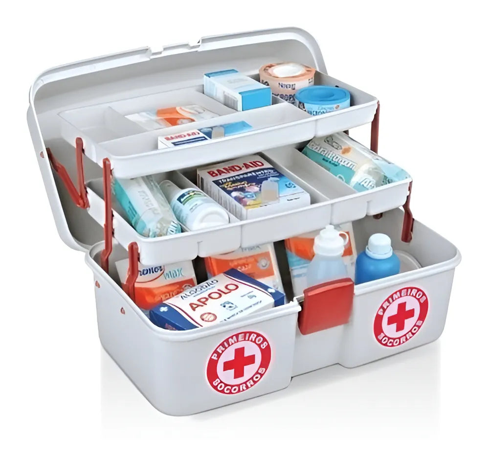 Caixa com produtos de primeiros socorros que atende a demanda esperada.