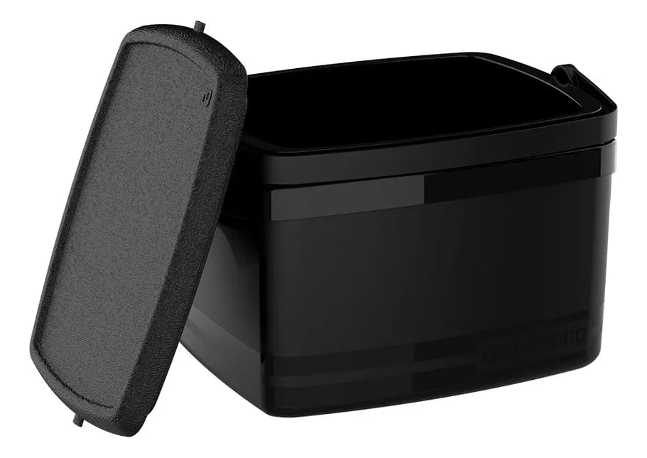 Cooler com 12 Litros de capacidade, livre de bisfenol (BPA FREE), alças laterais embutidas, alça de mão articulável e retrátil, tampa com trava, porta-copos e isolamento térmico em isopor (EPS).