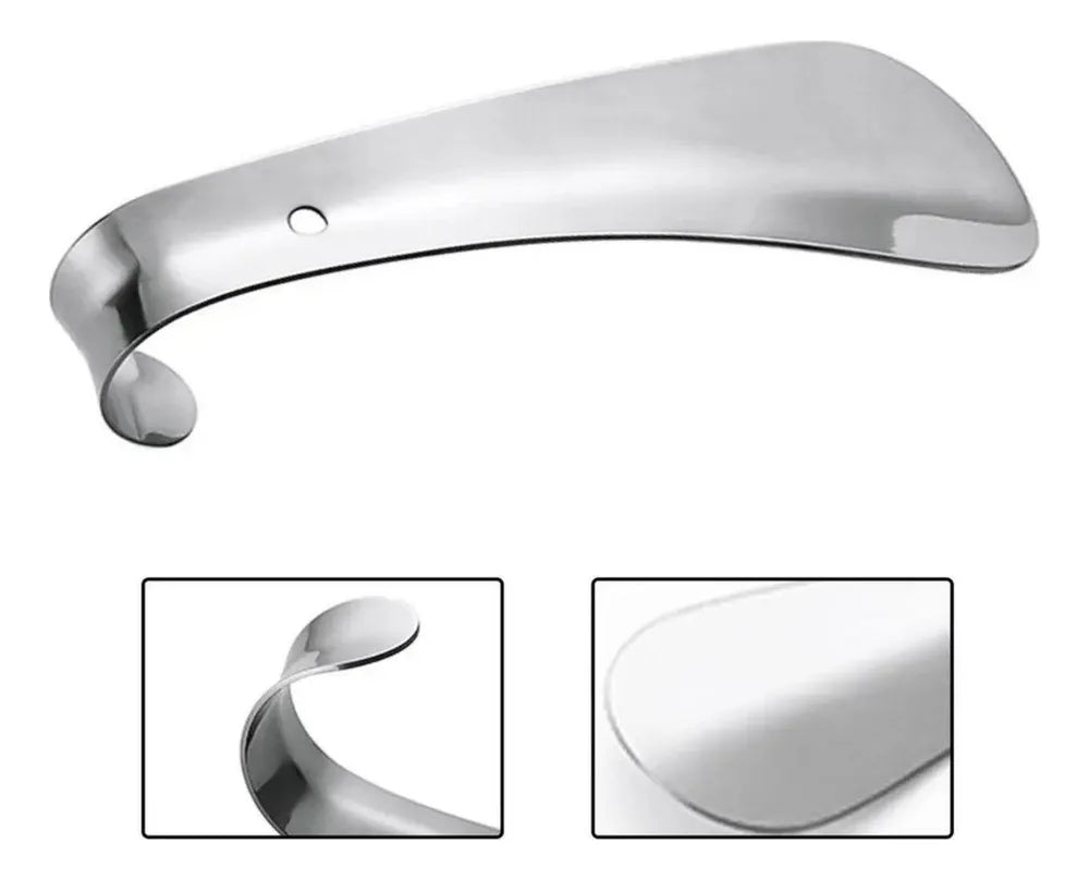 Calçadeira fabricada em aço inox de alta qualidade e resistente, não dobra ou enferruja.