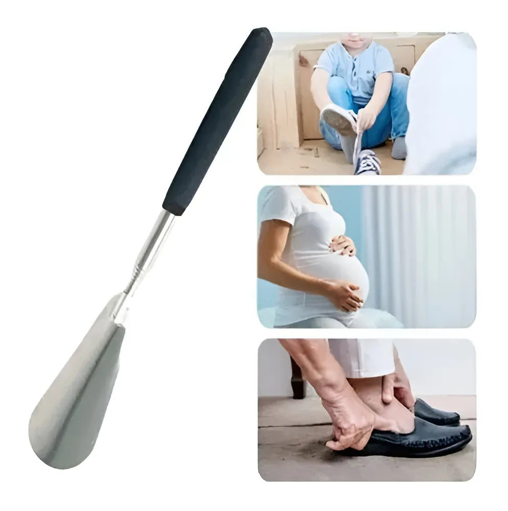 Indicada para idosos e pessoas com dificuldades de movimento, facilitando com o seu longo alcance a ação de calçar, e evitando danos ao calçado.
