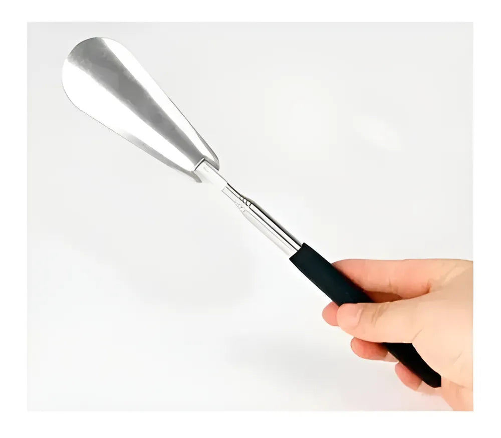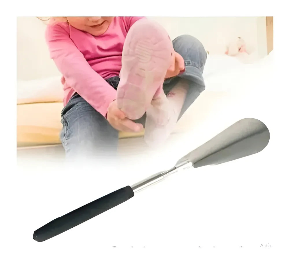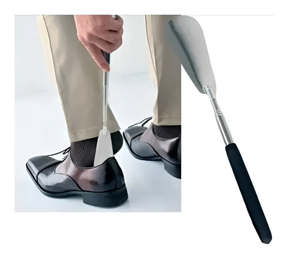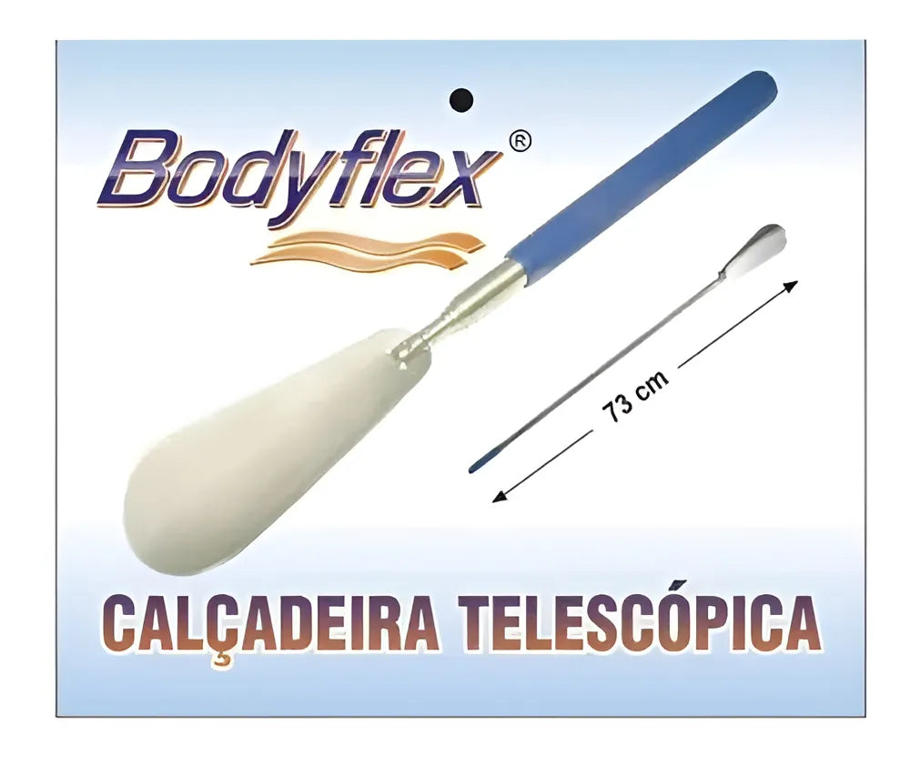 A calçadeira telescópica Bodyflex facilita o calce reduzindo o atrito entre o calcanhar e o calçado.