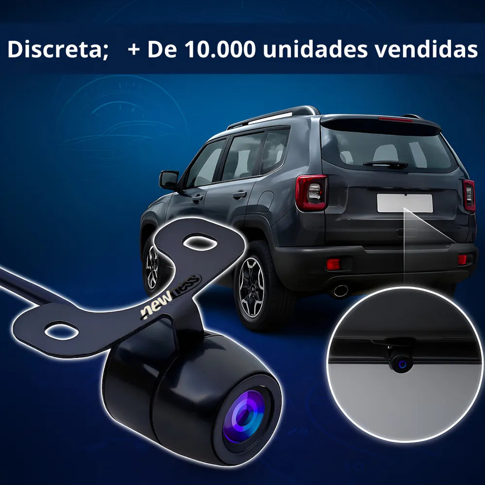 Esta câmera possui linhas guias coloridas que auxiliam na manobra do veículo, proporcionando uma direção mais segura e precisa. Com um ângulo de visão de 150°, oferece uma visão ampla e abrangente da parte traseira do veículo, facilitando as manobras em estacionamentos lotados ou em ruas movimentadas.