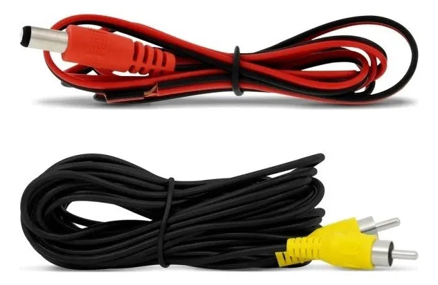 Na embalagem do produto, você encontrará a câmera traseira, o cabo de alimentação 12V DC, o cabo de vídeo RCA de 6 metros e os parafusos necessários para a instalação.