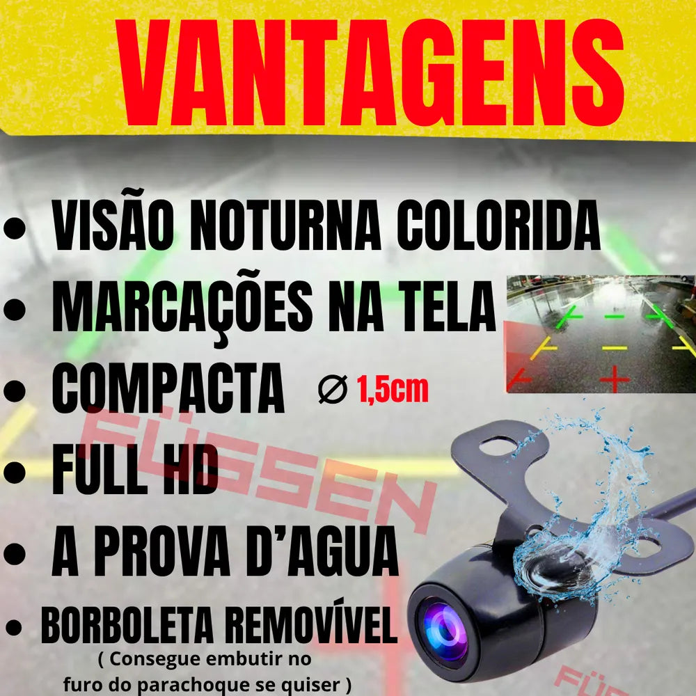 Este produto é importado e de alta qualidade e resistência. É um modelo universal, compatível com a grande maioria dos veículos. A instalação é simples, mas recomendamos que seja feita por um profissional da área de instalação de acessórios automotivos. A câmera de ré é resistente à água e a visão noturna é de excelente qualidade.