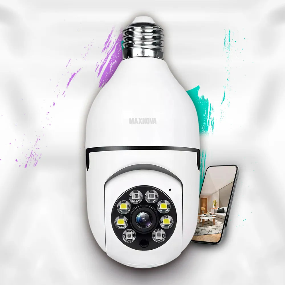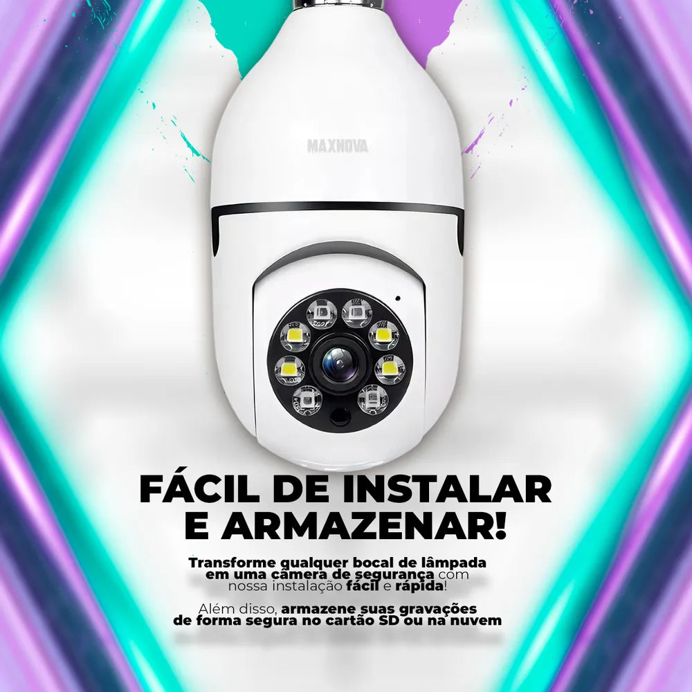Camera Lampada Panoramica IP com sensor de movimento 355° Cor Branco Maxnova