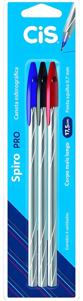 Descubra a precisão e o conforto da escrita com o conjunto de Canetas Esferográficas Cis Spiro Pro. Este conjunto exclusivo traz três cores essenciais para o seu dia a dia: Azul, Preto e Vermelho, permitindo uma organização visual eficaz de suas anotações e documentos. Com um corpo mais longo de 17,5cm, estas canetas proporcionam uma pegada mais confortável, ideal para longas sessões de escrita. O design inclui um corpo plástico flexível, capaz de resistir ao uso contínuo sem perder a forma. A tampa ventilada com clip é prática para prender a caneta em cadernos ou bolsos, garantindo que esteja sempre ao seu alcance. A ponta tipo agulha com esfera de aço inoxidável de 0.7mm oferece uma escrita suave e precisa, ideal para quem valoriza a clareza e a fineza no traçado. Este blister contém 3 canetas da linha SPIRO, reconhecida pela qualidade e durabilidade, e é produzido pelo renomado fabricante Cis, sinônimo de confiança no mercado de materiais de escritório.