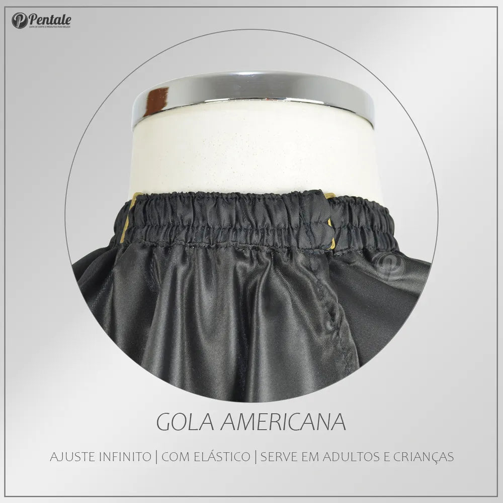 Capa De Corte Cabeleireiro Barbearia em Cetim c/ Gola Americana