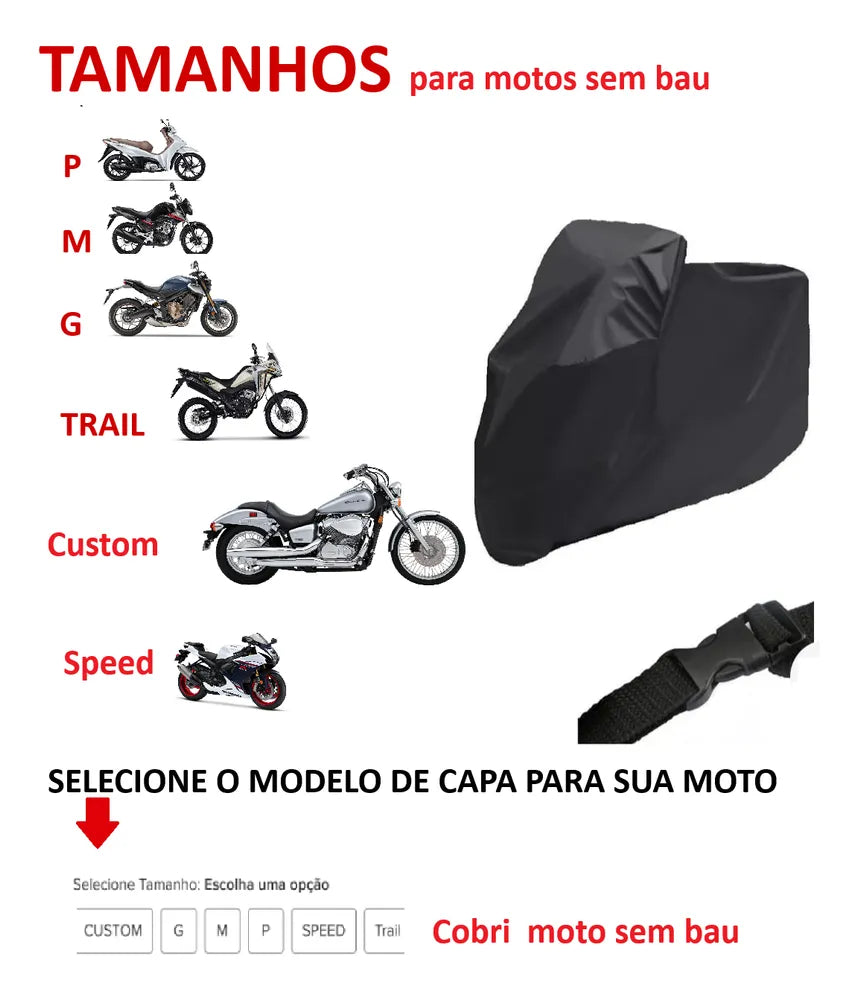 ESSE MODELO COBRI MOTOS CUSTOM PERMITINDO VESTIR A MOTO sem acessórios OU COM BOLHA E TAMBEM SISSY BAR.